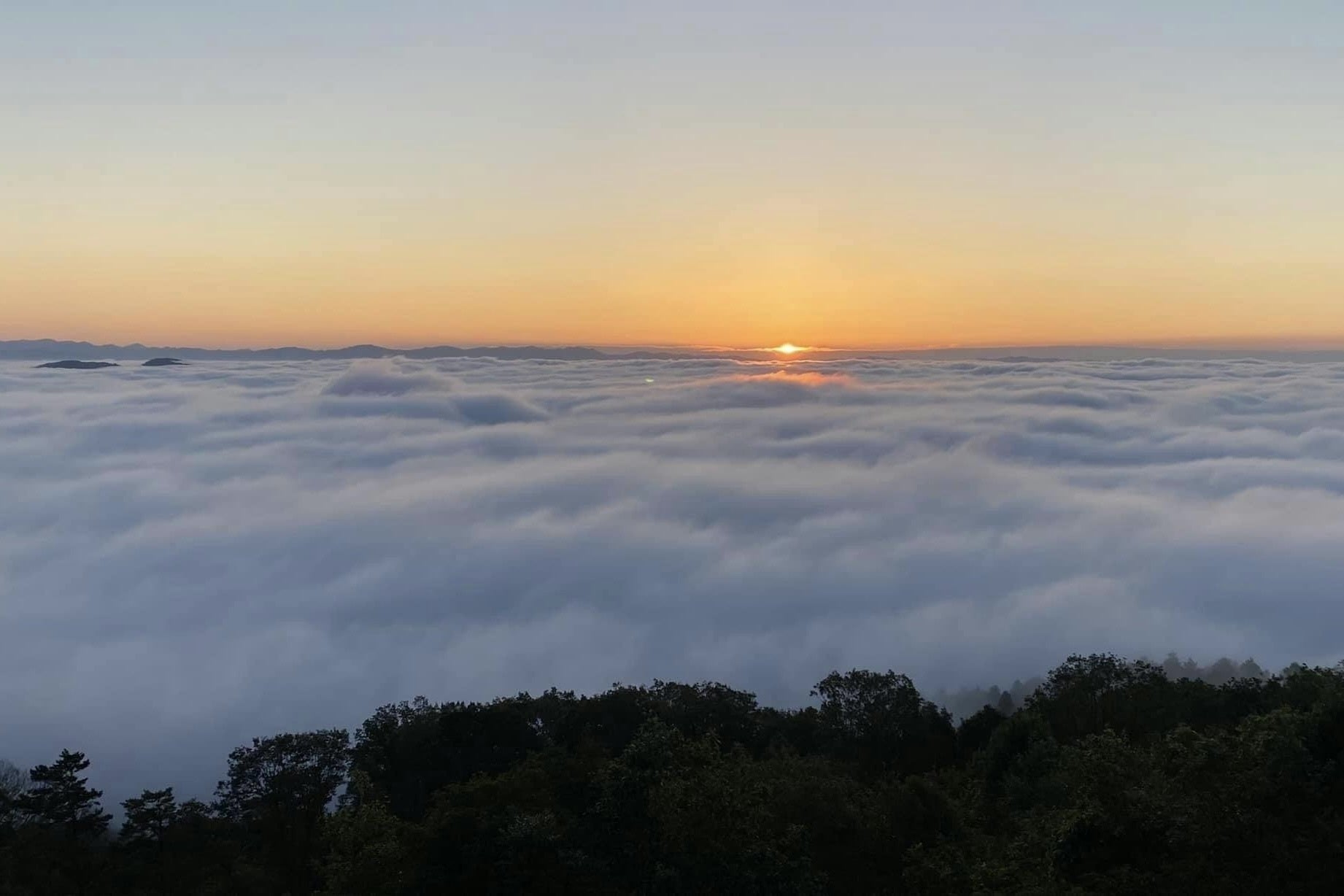 三次の霧見物の名所、高谷山山頂より霧の海から登る朝日