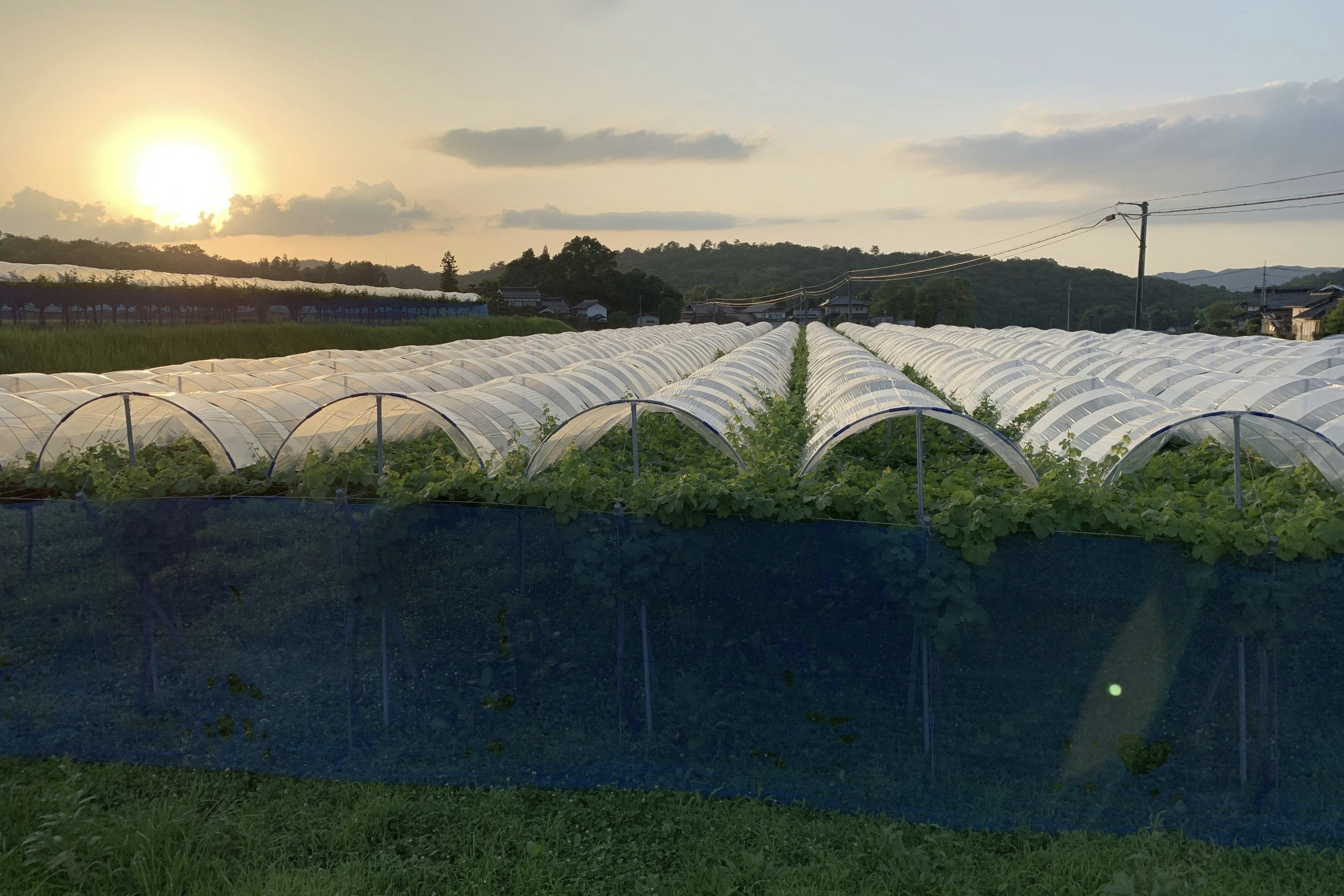 雨避け栽培を行うことで農薬の使用量の低減、作業の効率化、果実成分の濃縮が期待出来ます。11月から遅い時には12月中頃まで収穫が遅くなる貴腐葡萄の収穫には雨避け設備は必要不可欠です。