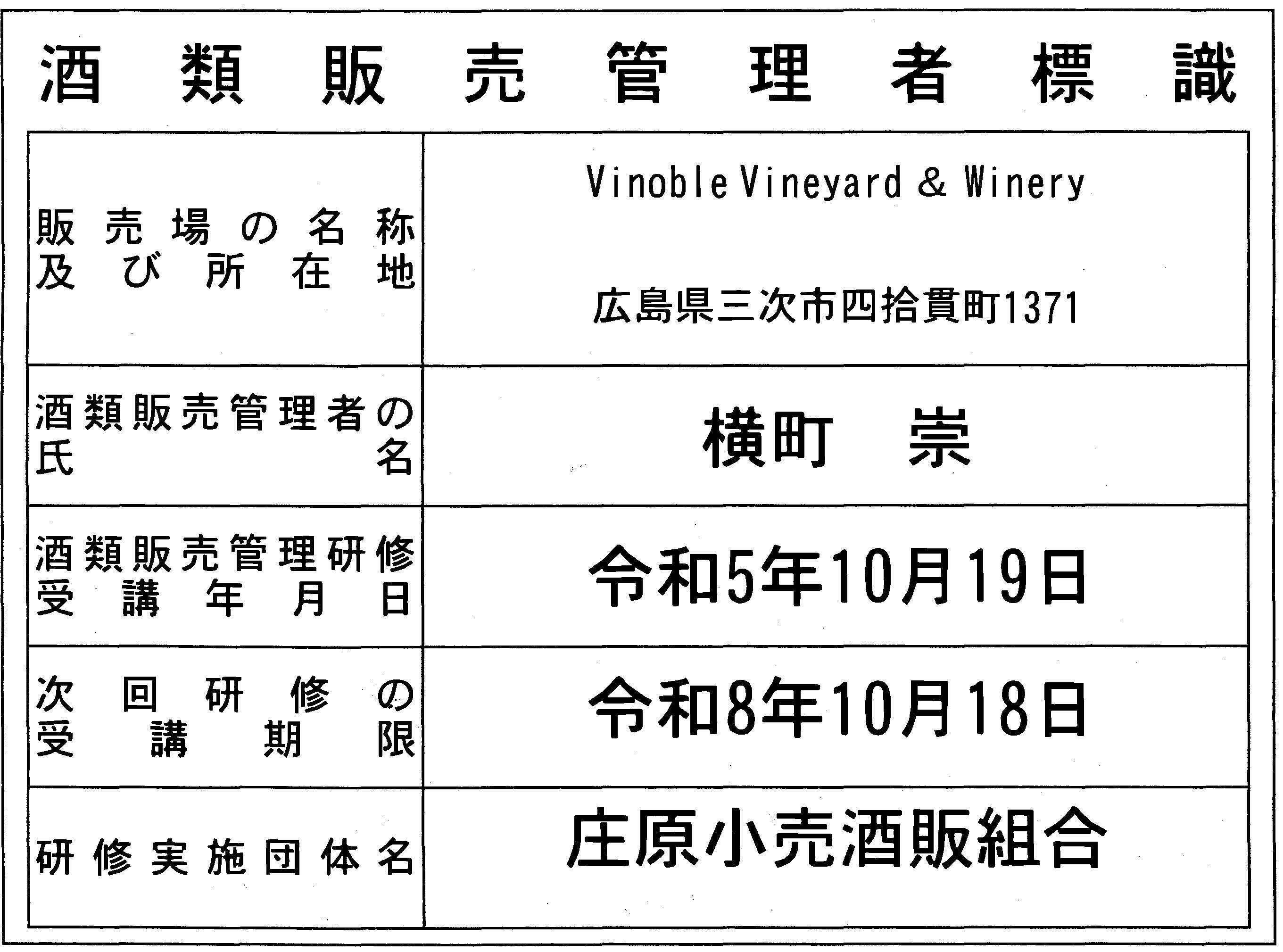 広島県三次(みよし)市でVinoble Vineyard & Winery(ヴィノーブルヴィンヤード アンド ワイナリー)を営んでいる横町崇と申します。