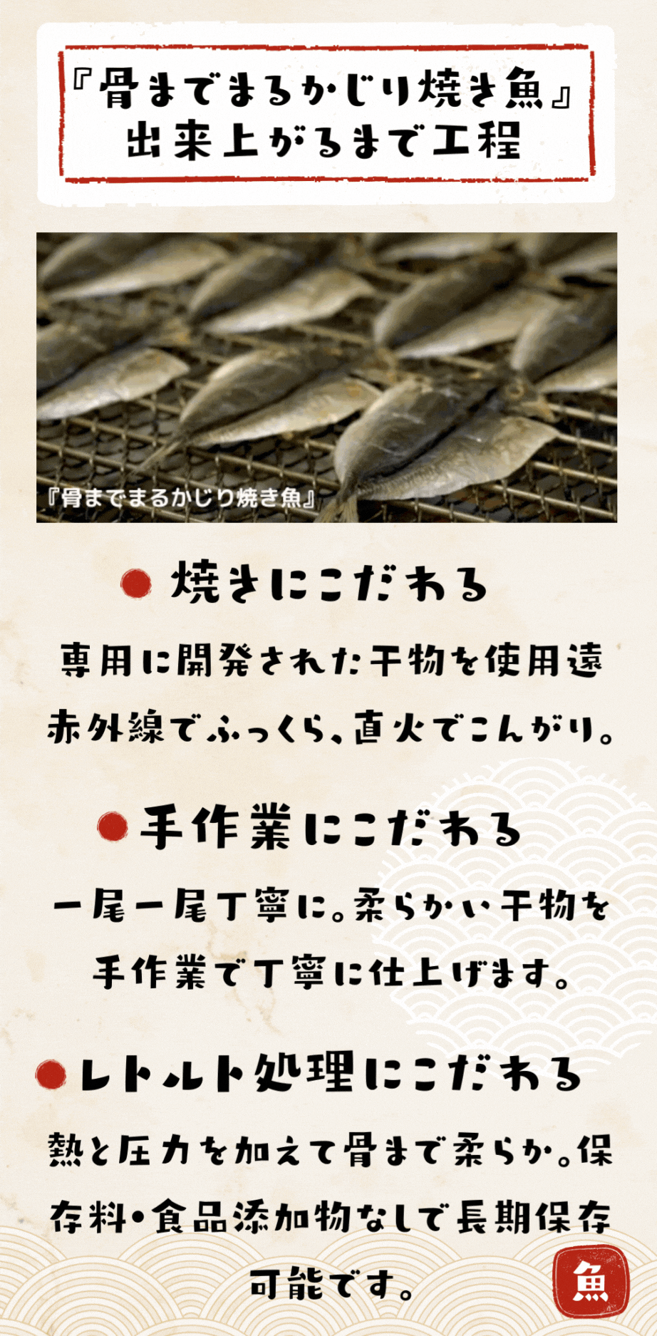 袋内の魚の中から油分が出ることがありますが、それは魚に含まれる栄養成分です。品質には問題ありませんので安心してお召し上がりください。