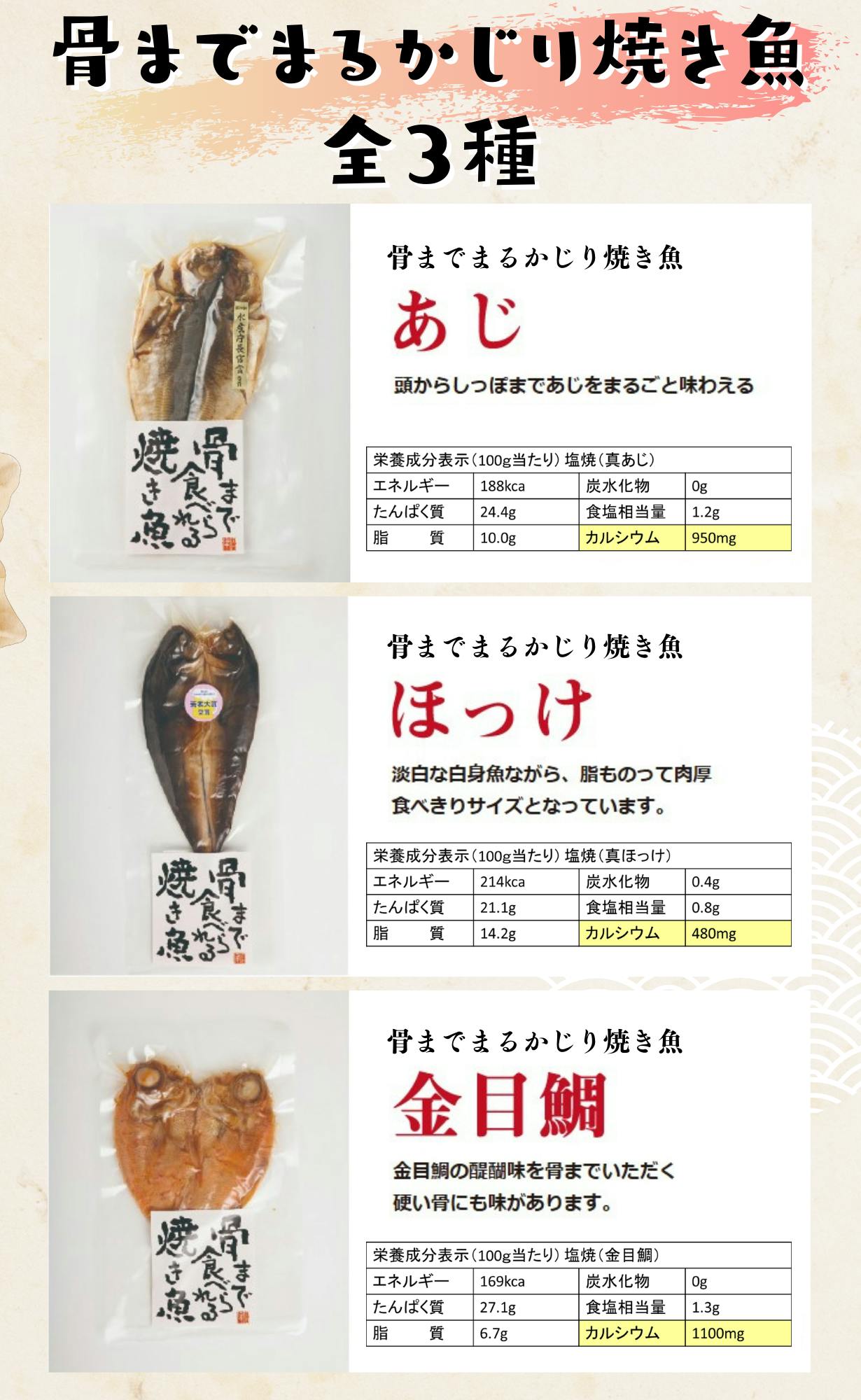 焼き魚にこだわり厳選した魚(真あじ・金目・真ほっけ)を今回は選びました。