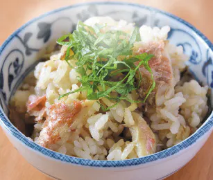 味付けした米に『骨までまるかじり焼き魚』をのせて