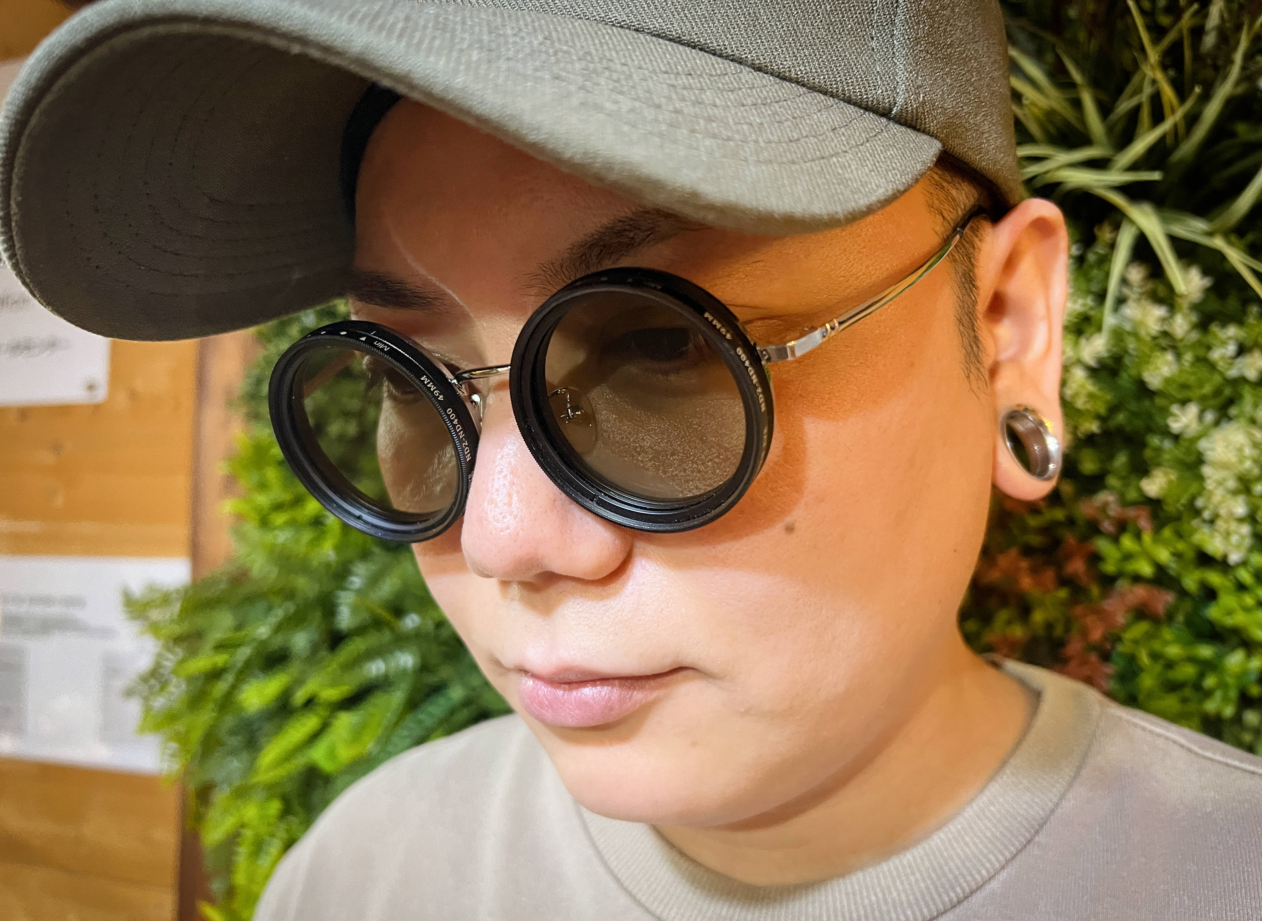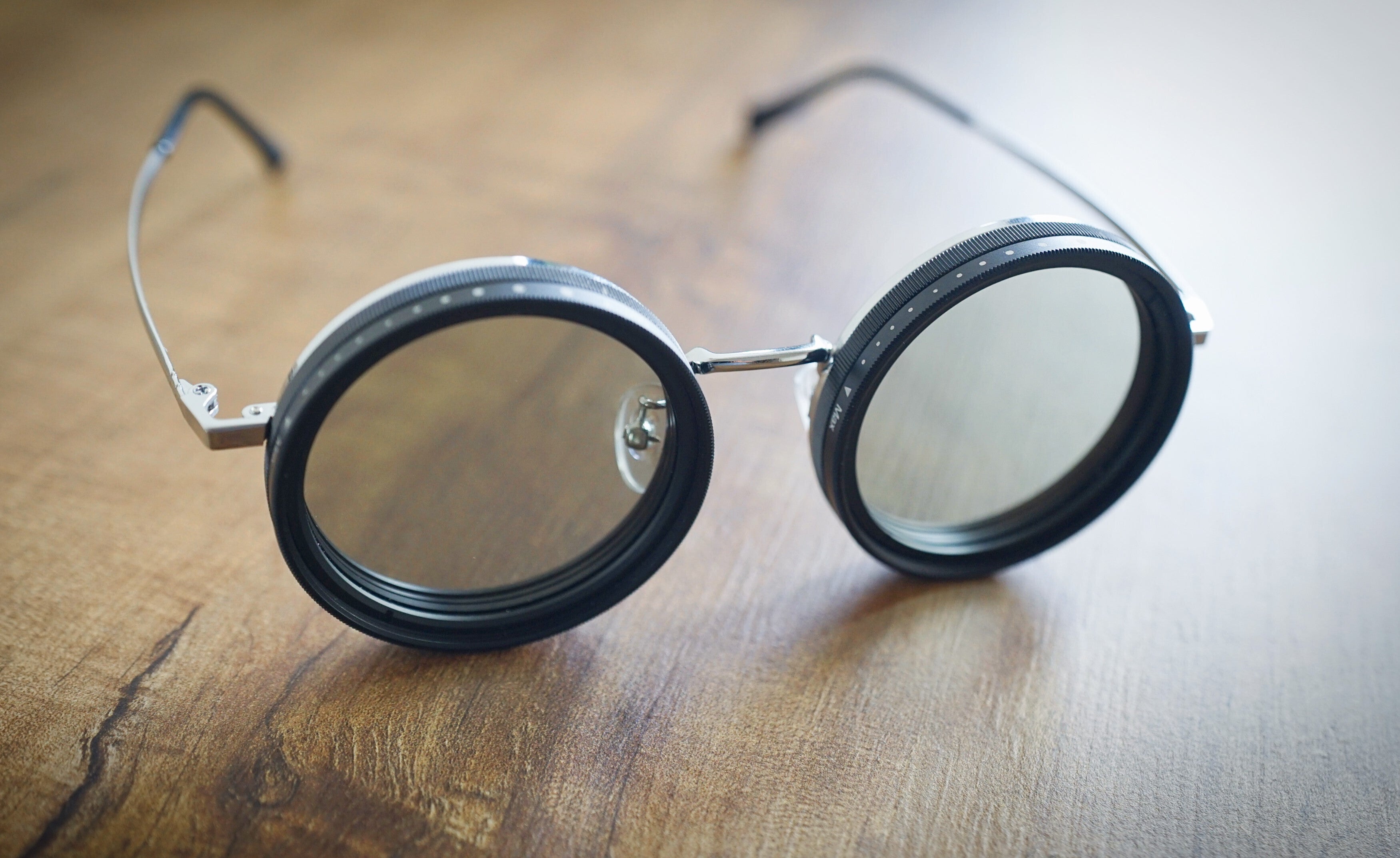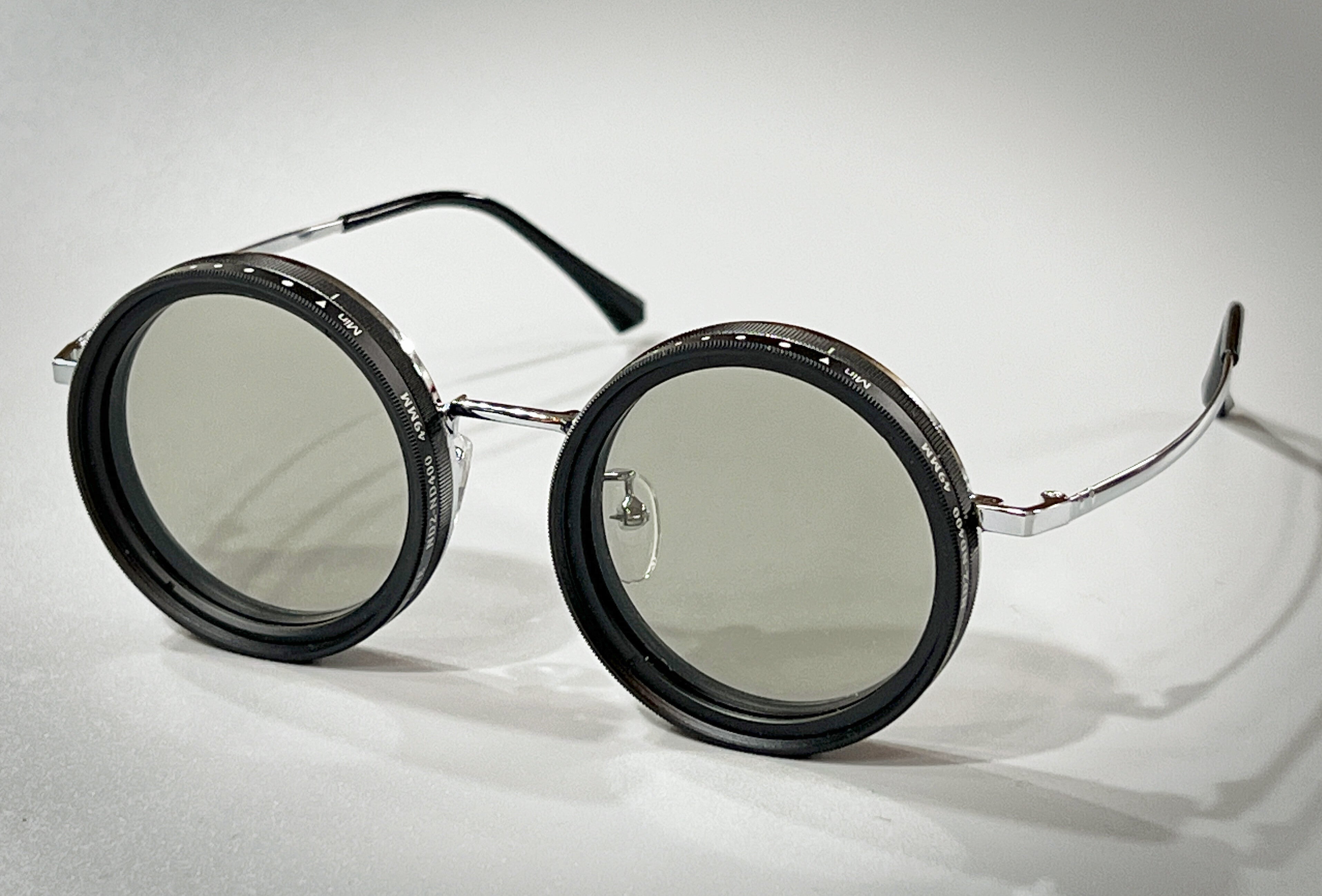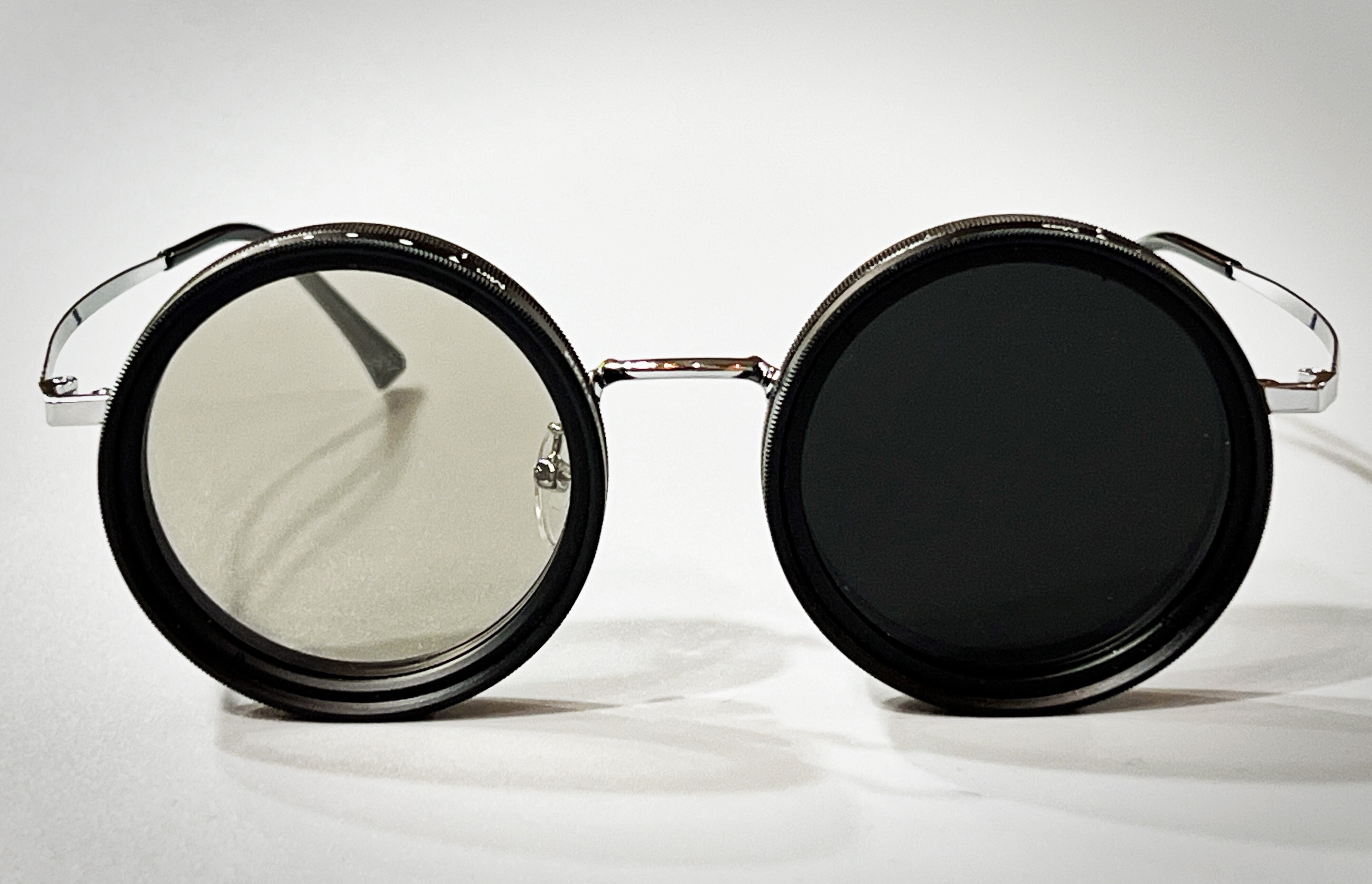 撮影が大好きな私は、同じ趣味を持つ友人と話しているうちに、あるアイデアが浮かびました。写真撮影の際に光の量を調整するためによく使われるNDフィルターは、サングラスの原理に似ています。これをサングラスに応用することで、眩しい日差しの屋外や少し暗い室内でも、手動で調整して対応できるようになります。