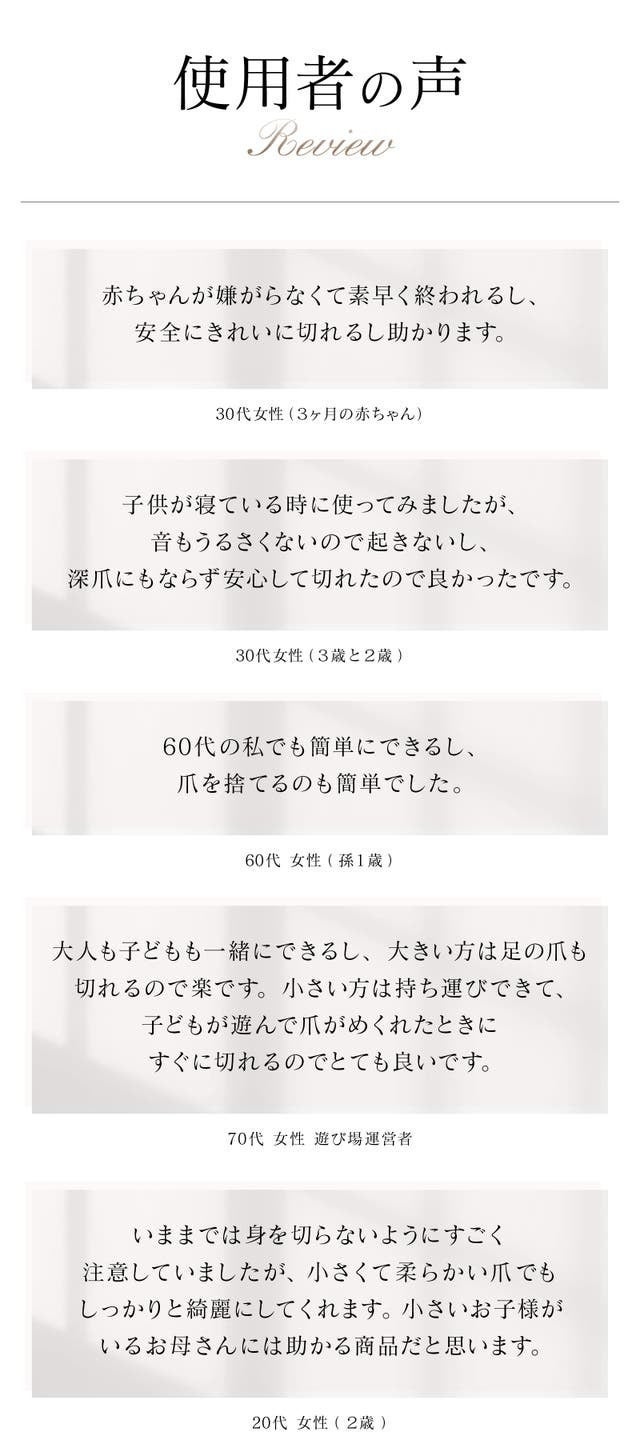 老若男女いろんな方が安心安全でお使い頂ける爪切り