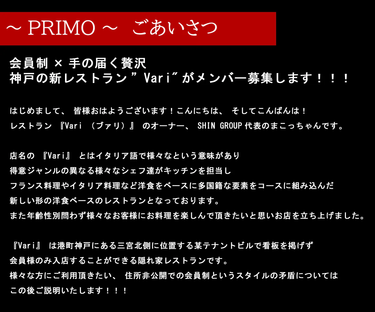 2025/01/21 10:00昨年より準備しておりました今回のプロジェクト無事に公開することができました!!!Variとしてクラウドファンディングにて会員募集をするのは2度目となりますが、まだまだ不慣れな事も多くご支援いただいた支援者様にご不安な思いやご不便おかけすることがあるかもしれませんが、どうぞ今後ともよろしくお願いいたします。公開し5日ほどたちますが、たくさんの応援購入並びに、メッセージありがとうございます!!!ご期待に応えれるよう、プロジェクトメンバーまたスタッフ一同全力でお迎えする準備を進めております!頂いたメッセージも大変うれしく、順次お返事していきたいと思っております♪リターンのご連絡遅くなり申し訳ございません。ご予約お受けする、予約サイトの整備に手間取っておりましたが、無事完成いたしました♪随時お送りしていきますので今しばらくお待ちくださいませ(>_<) もっと見る