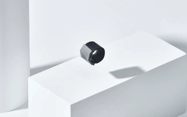3dプリントのパーツでしっかりとリングを固定できます。 リング自体はフレキシブルな素材なので、手にも良くなじみ、 活動計のように気軽に身につけられるデザインになっています。