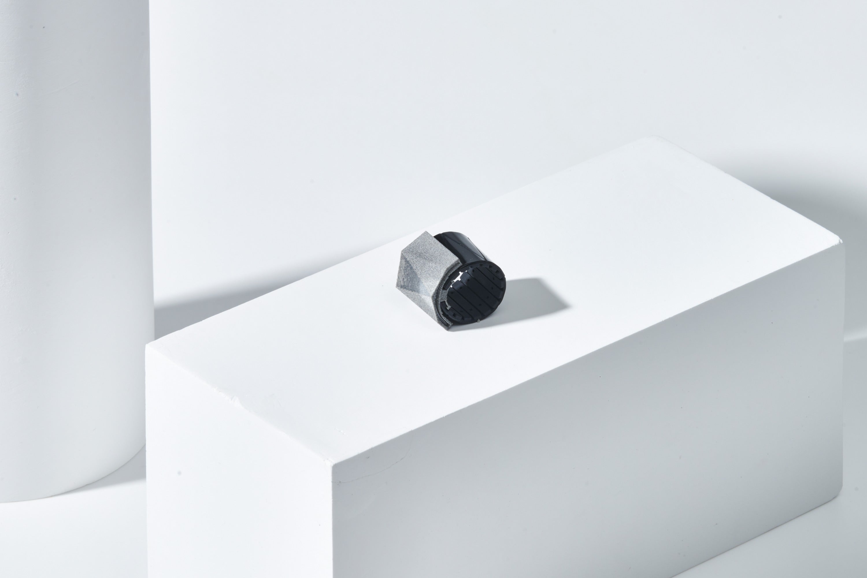 リングをつけるときは、3dプリントパーツをはめ込むだけ。 指輪は金属であるという固定概念にとらわれず、フレキシブルな素材を採用することで、着脱しやすく指になじむデザインを考案しました。