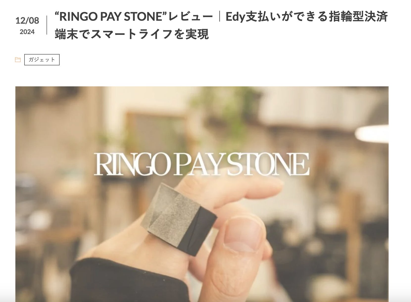 モズログさまにレビューしていただきました。https://gadgestu.com/ringo-pay-stone/