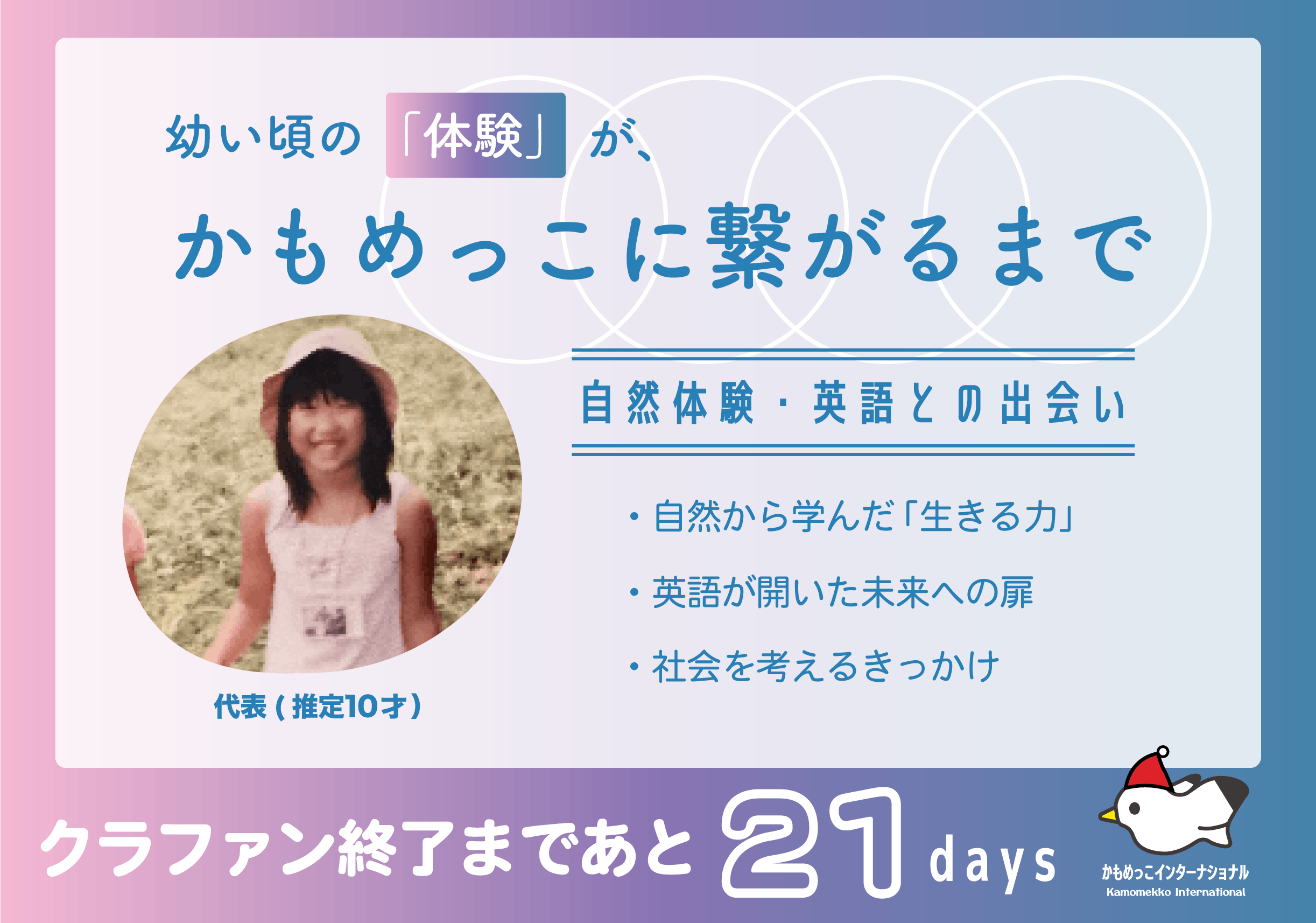 現在、ひとり親世帯の子どもたちに英語や自然体験を届けるためのクラウドファンディングに挑戦していますが、