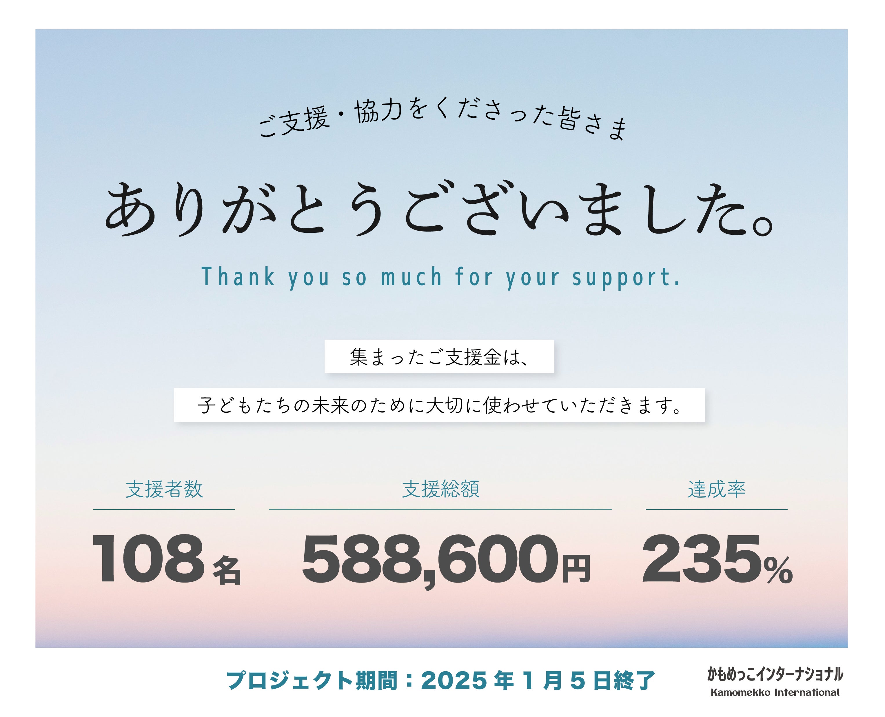 ご支援をくださった皆様、心から感謝申し上げます。