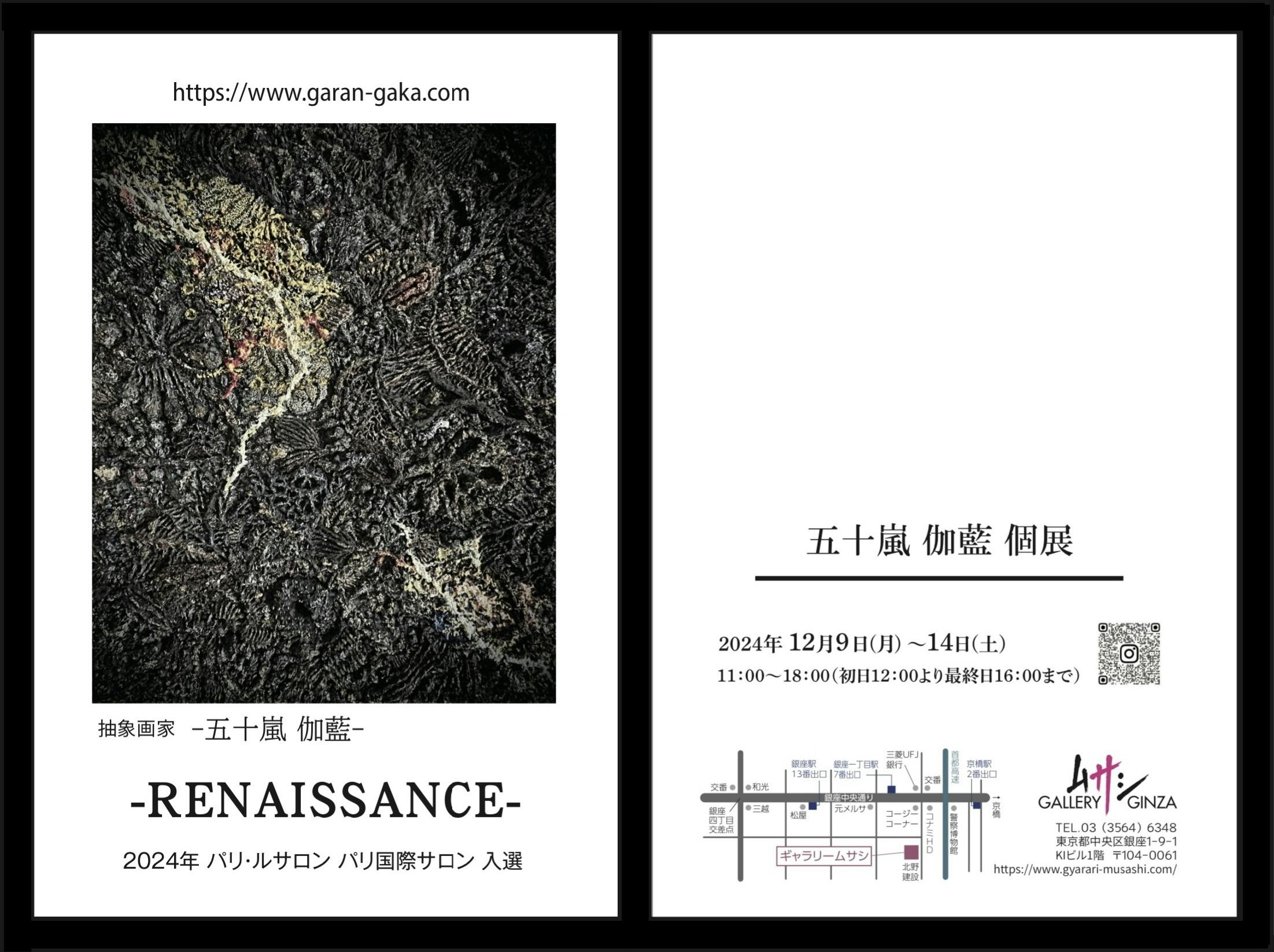 この度、銀座ギャラリームサシさんとのご縁があり、アート作品を出品する機会をいただきました。私にとっては初の個展開催となります。私の作品は万人受けするような作品ではないかもしれませんが、私の魂を込めて全身全霊で制作した作品です。
