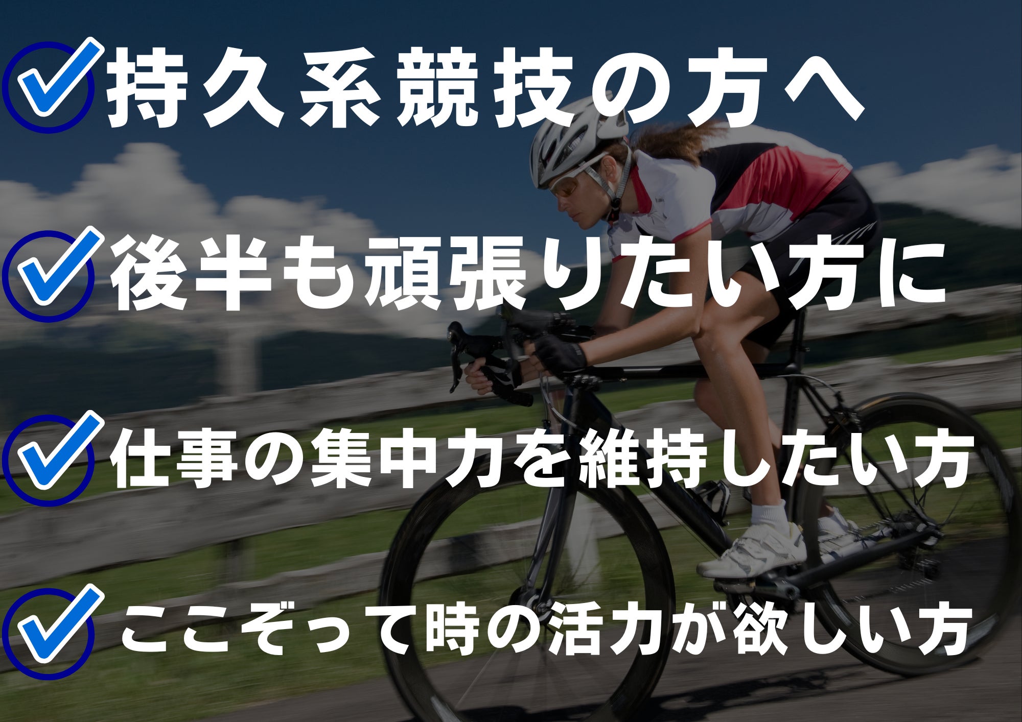 「レースの中盤で摂取するとパフォーマンスが維持しやすくなった」とのお声を多数受けました。