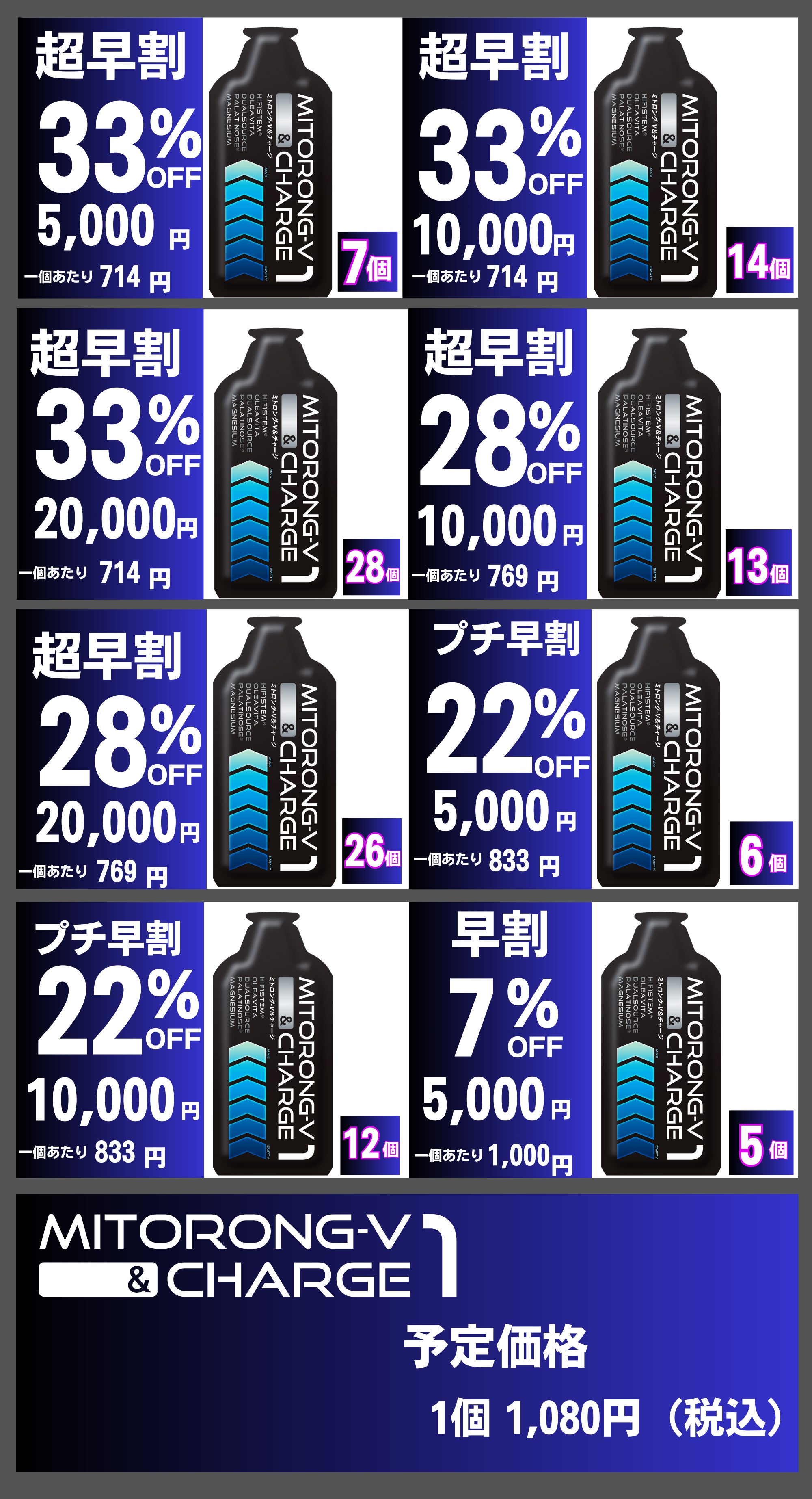 2025/04/18 14:37支援者の皆さまへ平素より温かいご支援を賜り、誠にありがとうございます。お待たせしておりました「ミトロング-V&チャージ1」の発送日が決定いたしましたので、ご案内申し上げます。◆ 本製品の発送予定日:5月25日(日)なお、「それ以前にお試しいただきたい」という方には、プロトタイプ版のご用意もございます。1セット6個入りでのお渡しが可能ですので、ご希望の方はぜひお申し付けください。また、本製品の販売価格は以下の通り決定いたしました。◆ 1個あたり:1,350円(税込)◆6個セット :7,290円(税込)今後とも引き続き、応援のほどよろしくお願い申し上げます。また、プロトタイプ購入希望の方はhttps://tsujigym.shop/products/v-5000-7-100reservation こちらで購入できます。 もっと見る