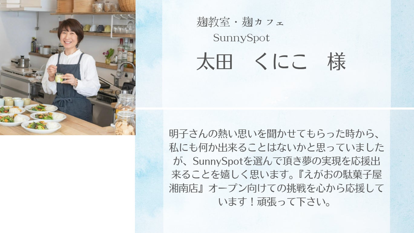 ※上記の居場所は愛知県の「えがおの駄菓子屋」ではすでに実施していることであり、湘南店ではこれから目指していく姿です。