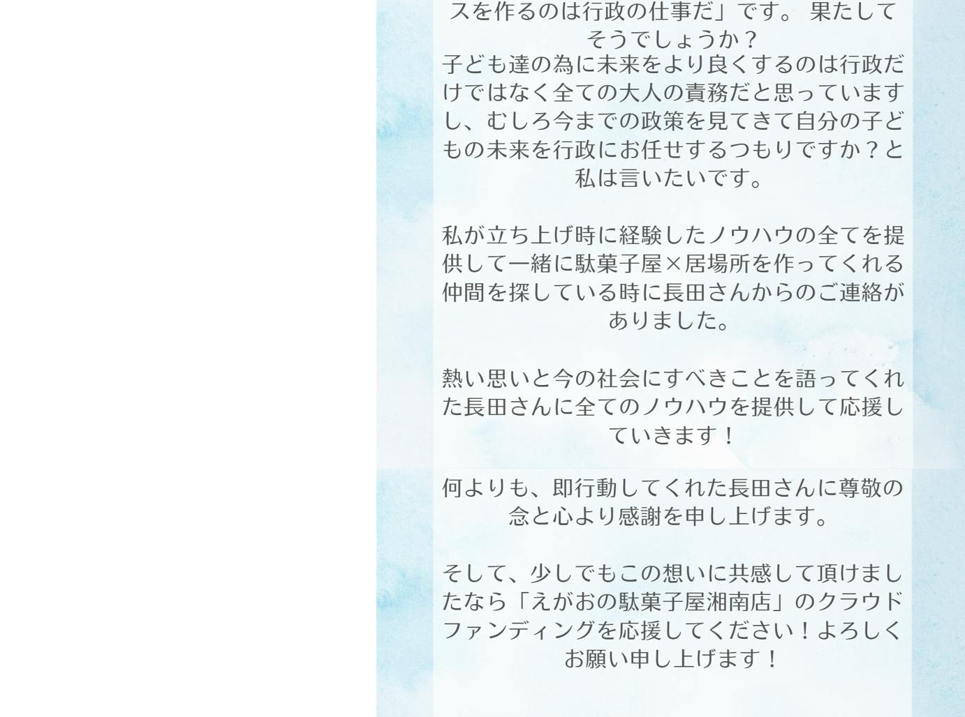 このプロジェクトにご賛同いただき、温かいご支援をよろしくお願いいたします。