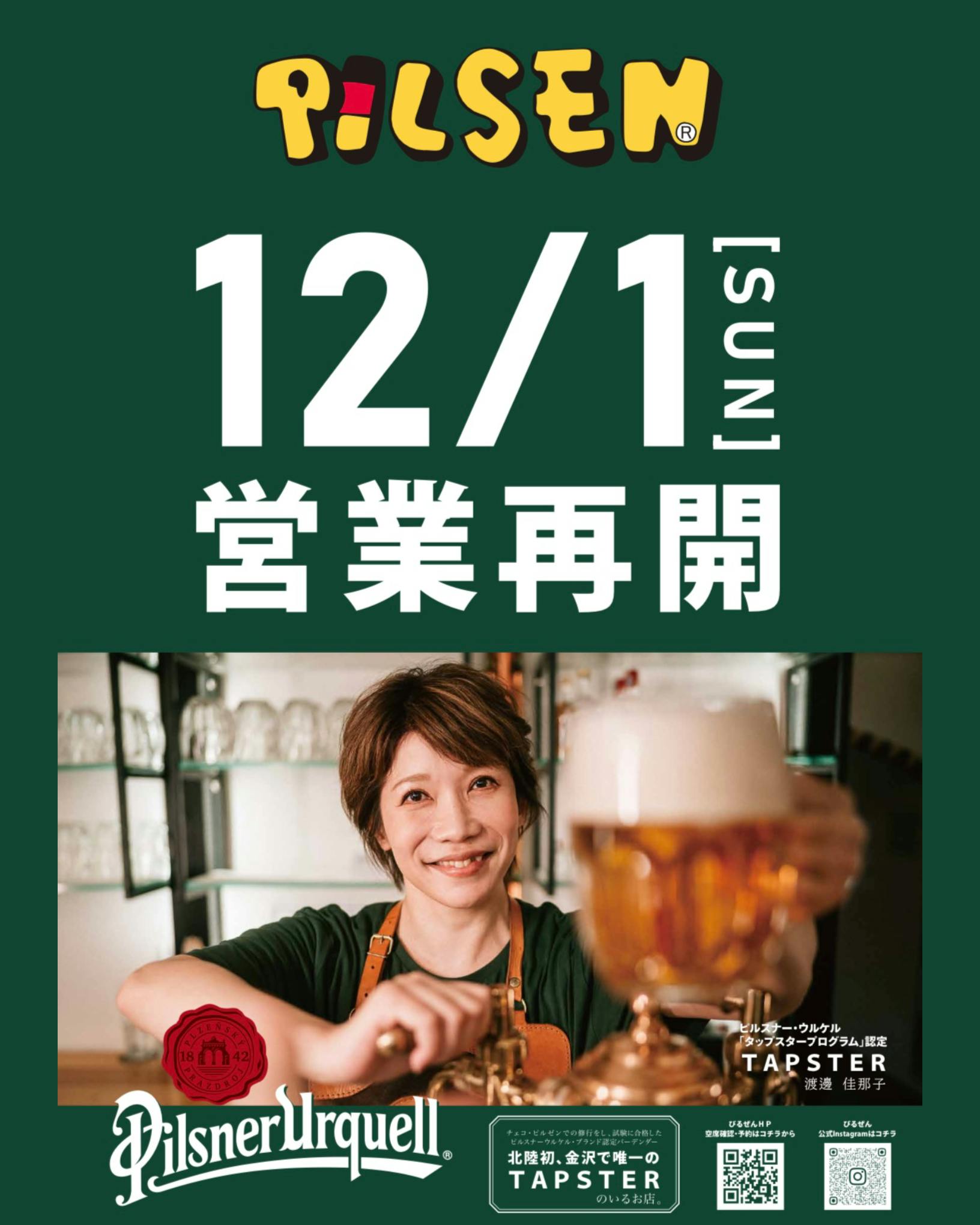 1968年創業の金沢で老舗のビアホール「ぴるぜん」の経営者兼ピルスナーウルケル社認定タップスターでもある渡邊佳那子です。