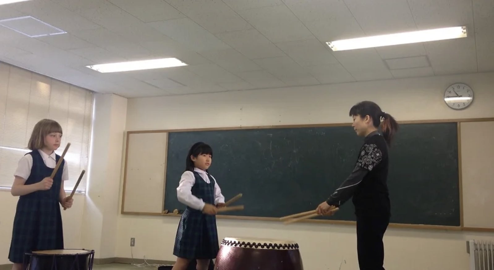 I am designing a curriculum based on the concept of learning taiko drums in English, both online and in real life, and I have been testing this new curriculum since September 2024. Students will learn the foundation training for taiko drumming, rhythm training, the grip to hold the taiko drum sticks, body movement essential for taiko drumming, and the historical components of taiko drumming, all in English.