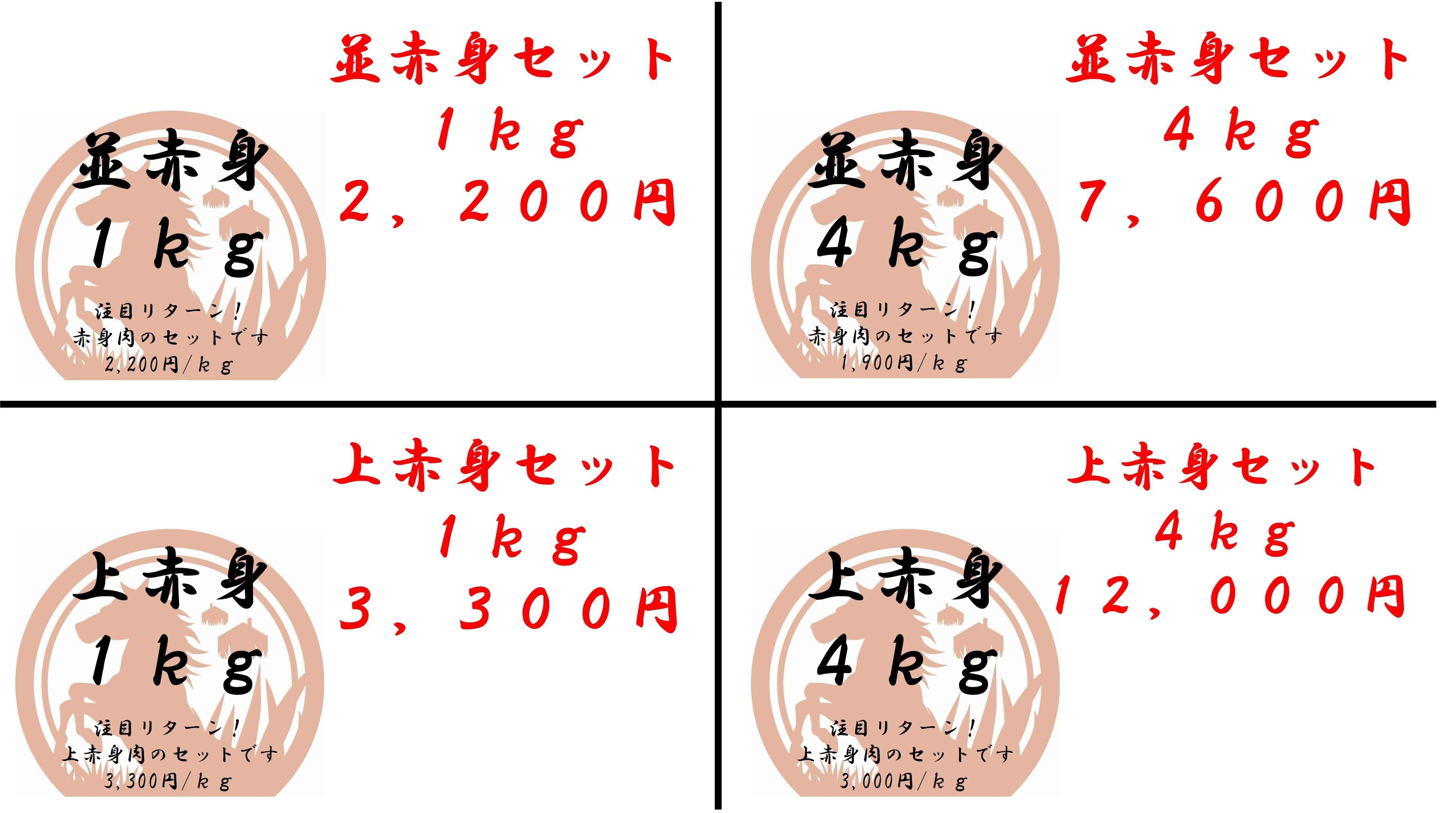 赤身セット4kg:7,600円(1,900円/kg)