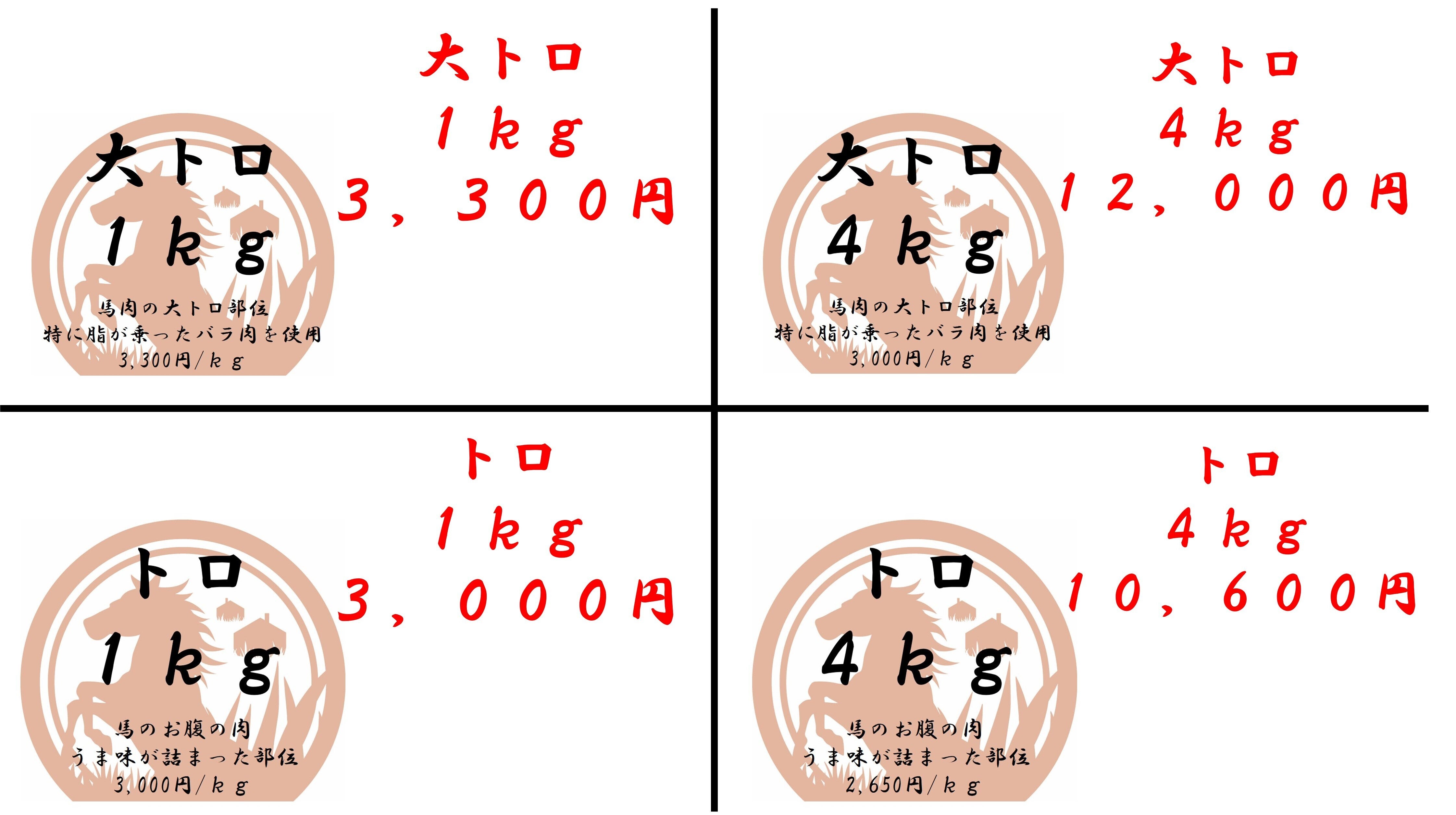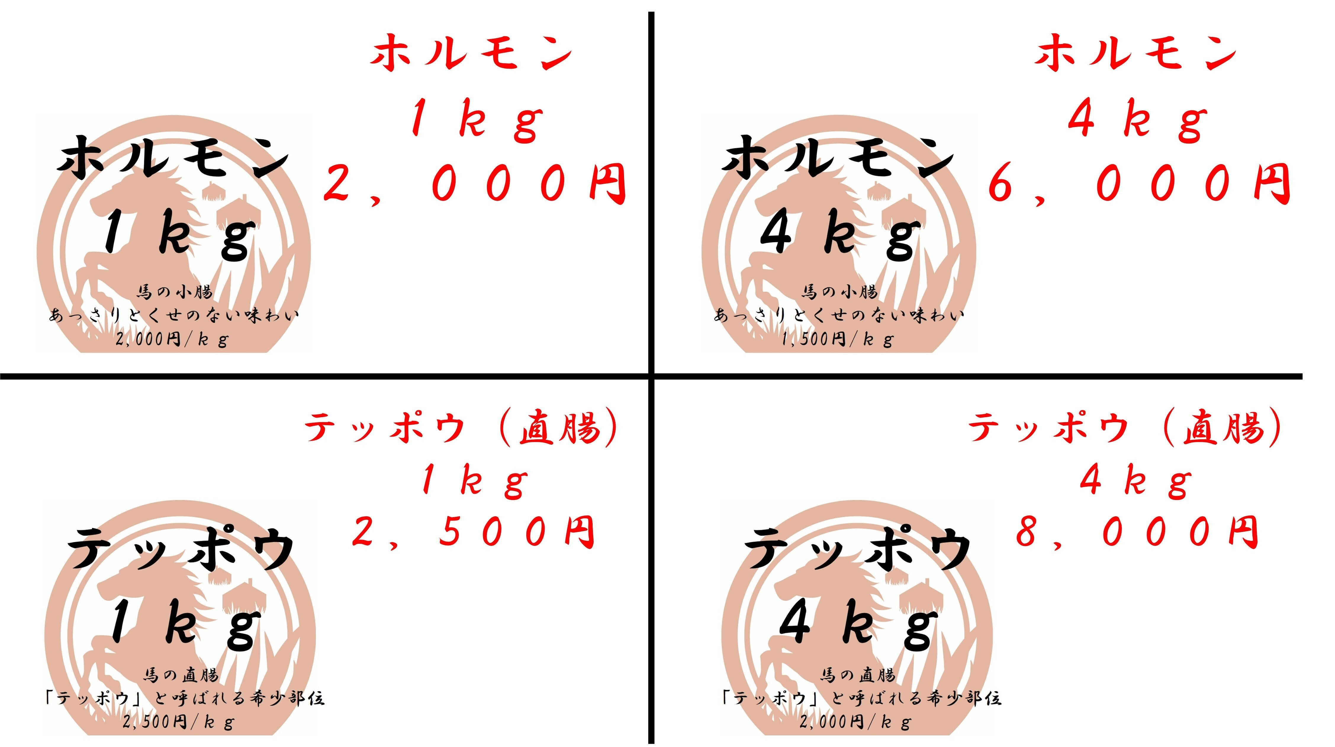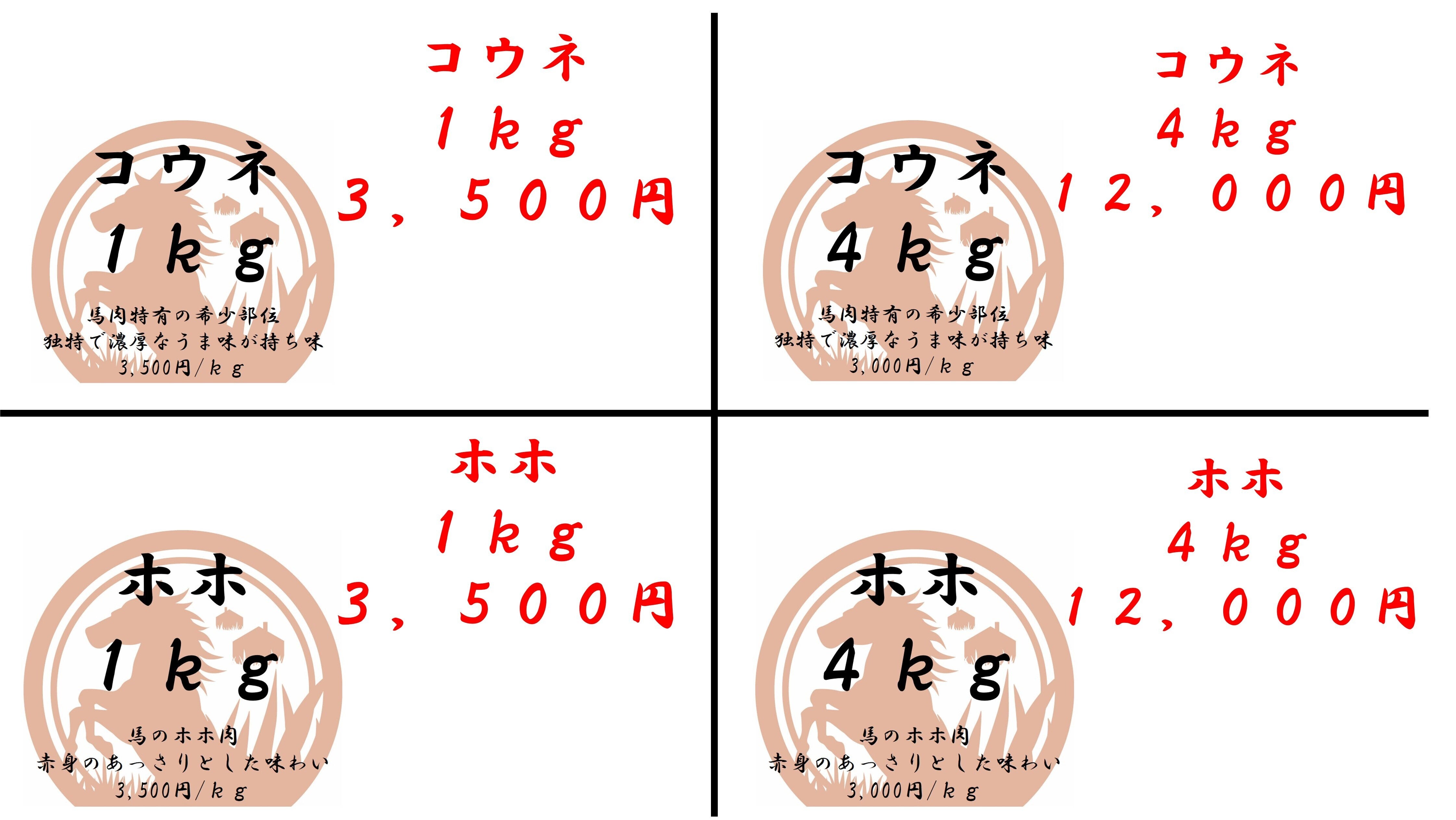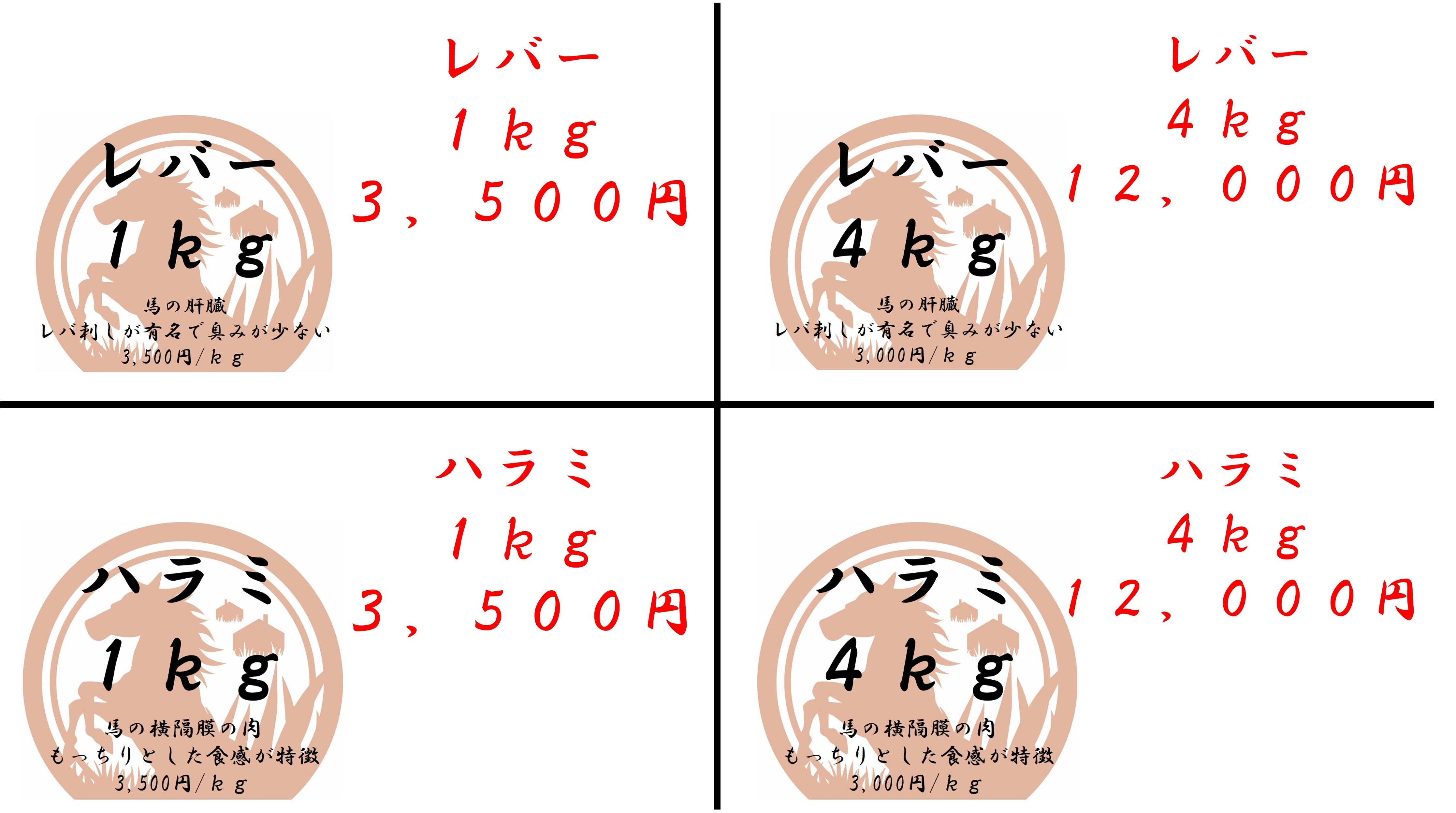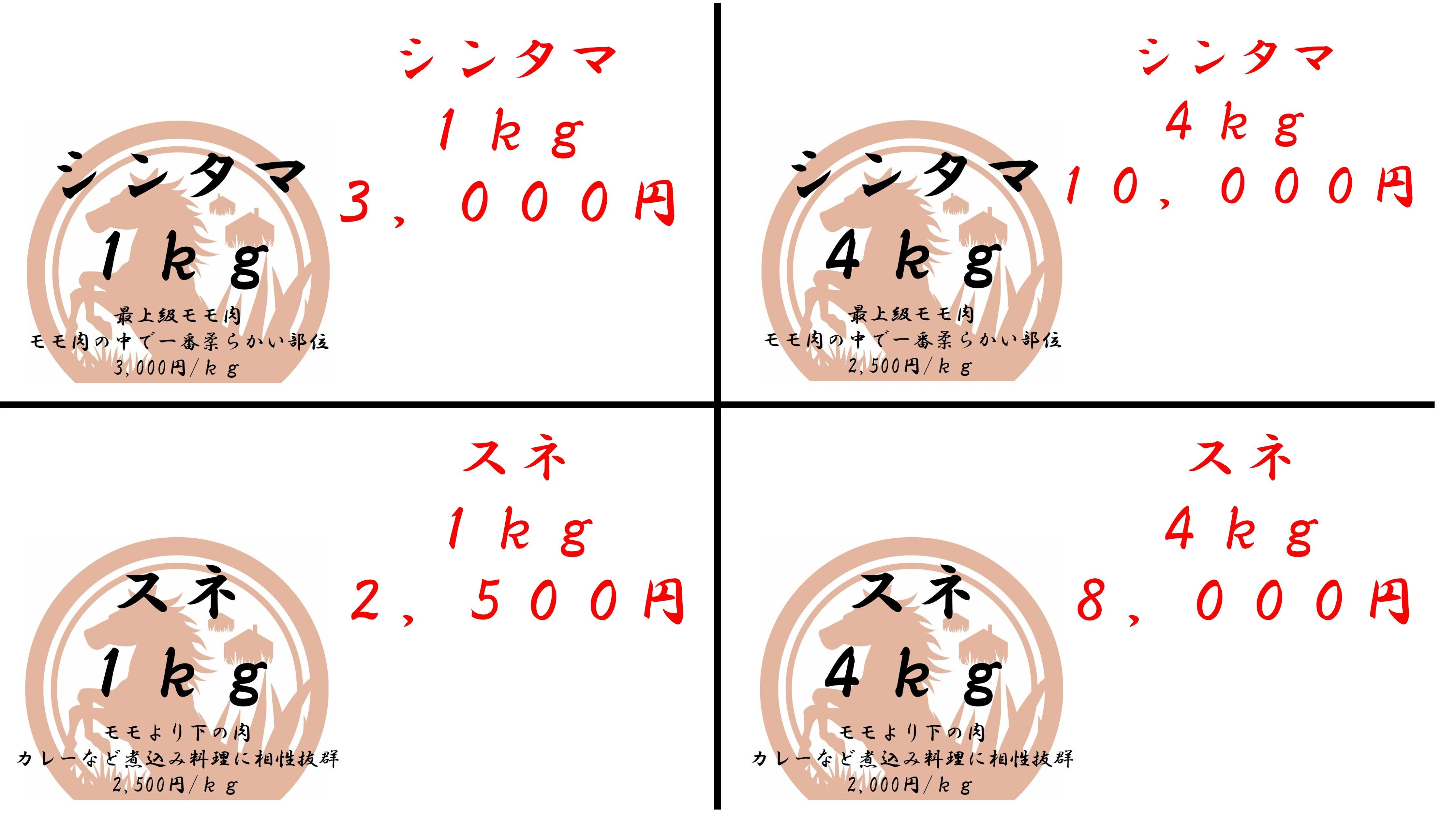 カルビ4kg:12,000円(3,000円/kg)