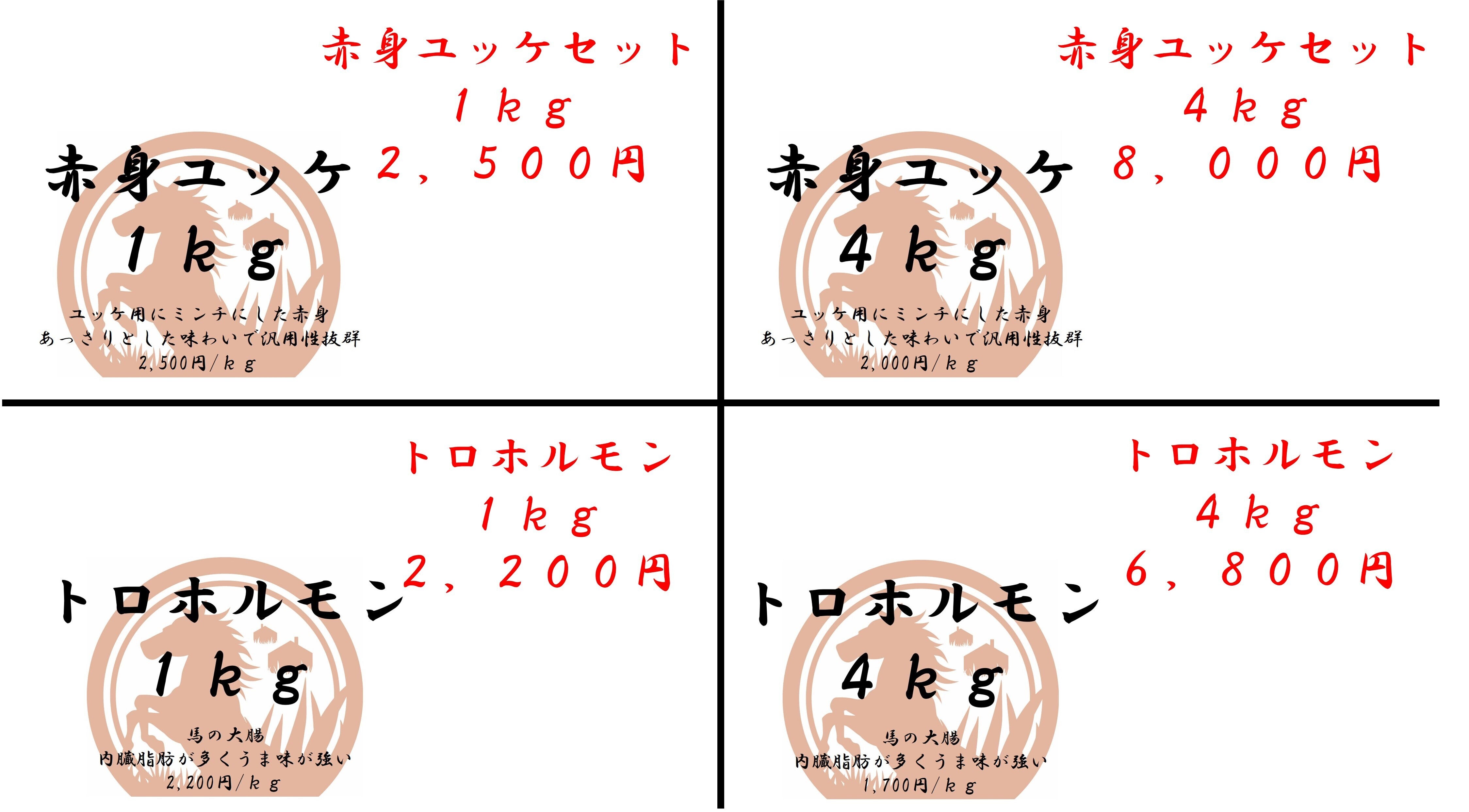 赤身ユッケ4kg:8,000円(2,000円/kg)