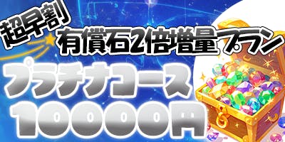 一般販売予定価格10,000円(税込み)⇒【特別価格5,000円】⇒有償石1,000個+特殊有償石12,000個(30日間×400個)