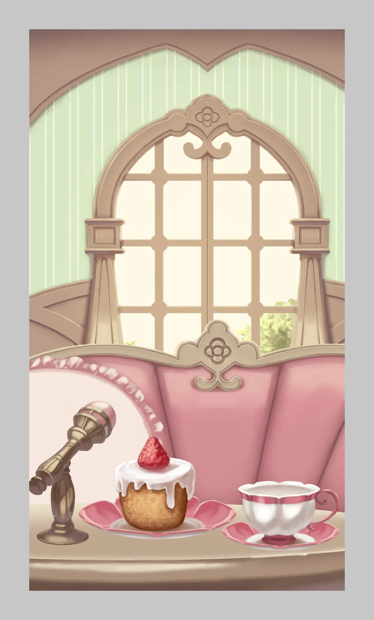 新しいデザインの「箱庭背景」が完成いたしました! もちろんソファ、背景、マイク、ケーキ、コーヒーカップなどすべて切り分けられてるので自由に変更可能です!