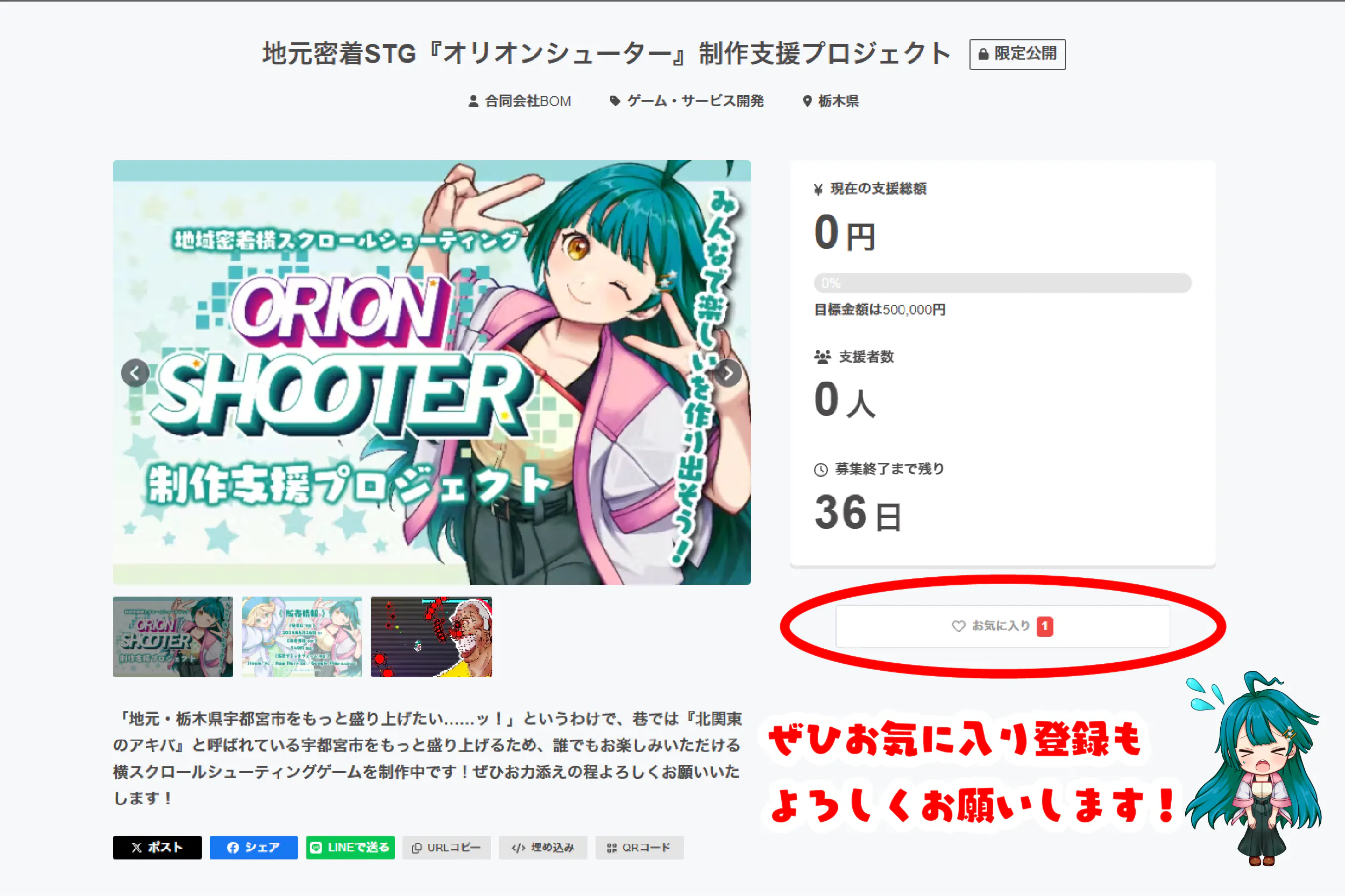 皆さま、『オリオンシューター』ご支援のほど何卒よろしくお願い致します!