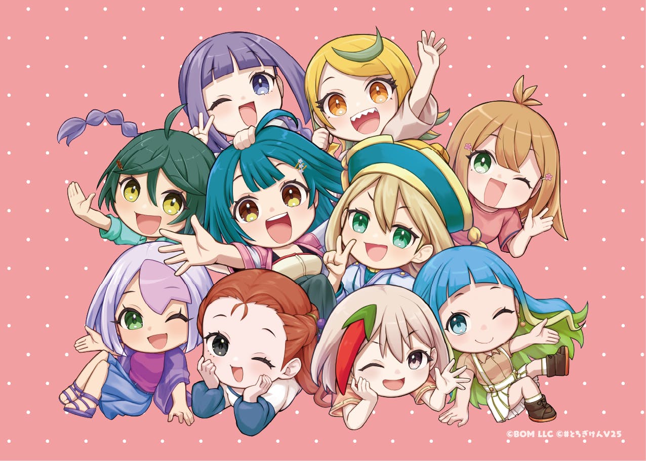 SDキャラの祭莉とユニとV25メンバーがぎゅっと真ん中に集合したキュートな一枚に仕上がっております。