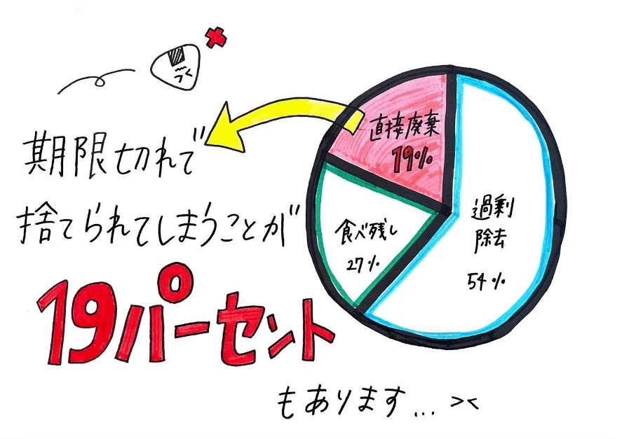 家庭というとても身近なところから発生している「食品ロス」をどうにかできないか、と私たちは考え、家庭から発生する食品ロスの原因を調べることにしました。そこで「期限切れによる直接廃棄」が約20%もあることを知り、食べられることなくそのまま捨てられてしまうなんてもったいない。どうにかして期限切れで捨てられてしまう食べ物を減らしたい、と強く感じました。