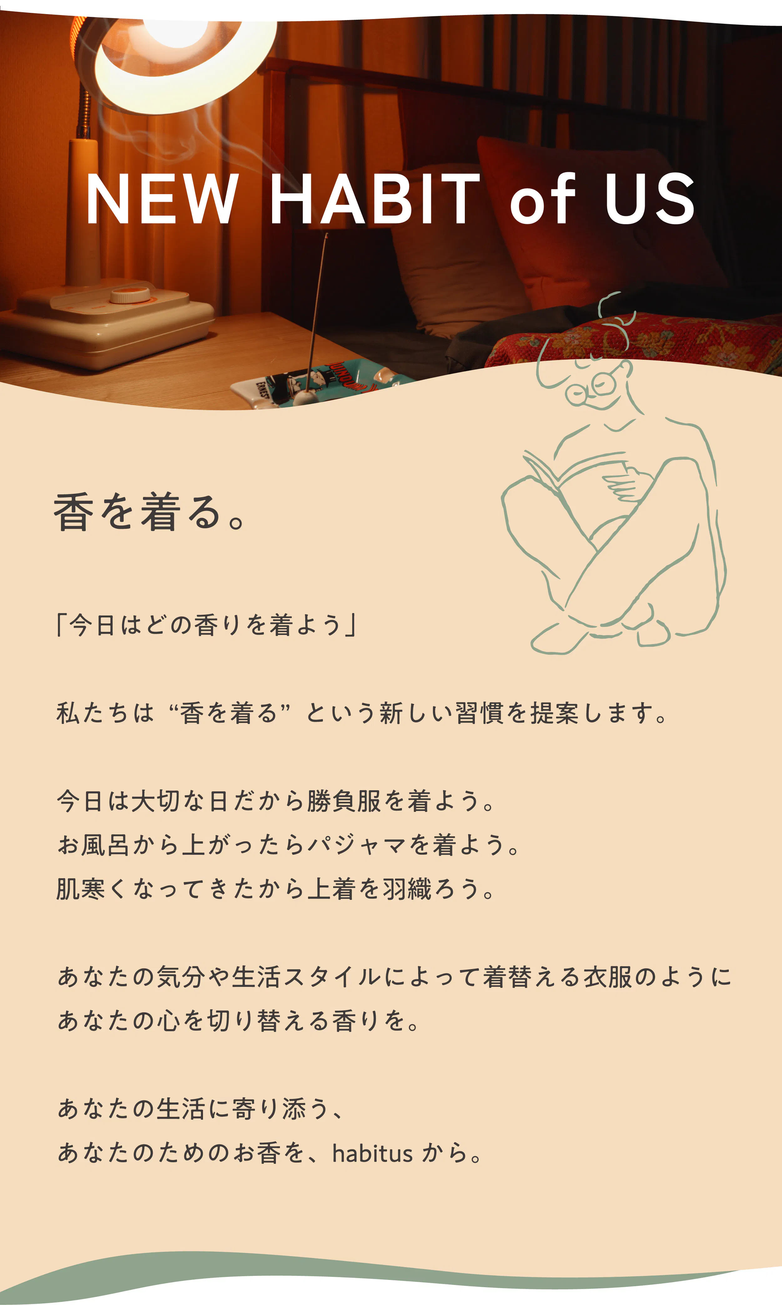 そのため、habitusは時間や気分に応じて選べる優しい肌触りの香りを追求し続けています。