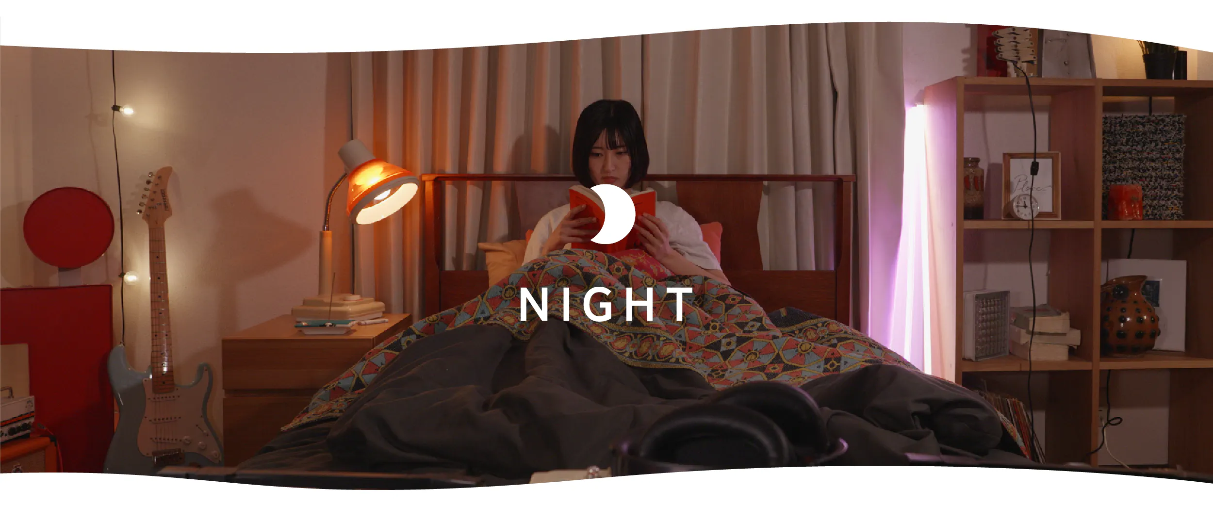 夜の香りには、アンバーとオリエンタルウッディーの2種類で頑張った身体を休ませてください。