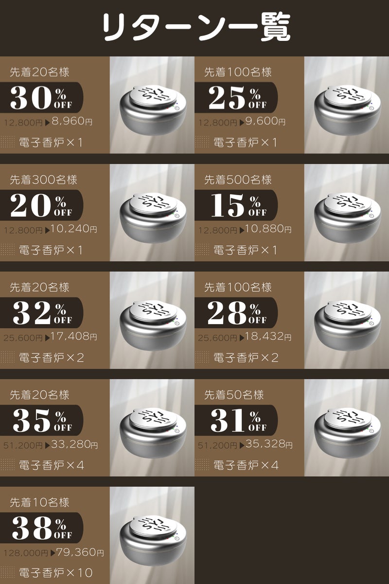 ●リターン価格:各リターン記載の通り *商品内容についてはリターン欄記載の通り