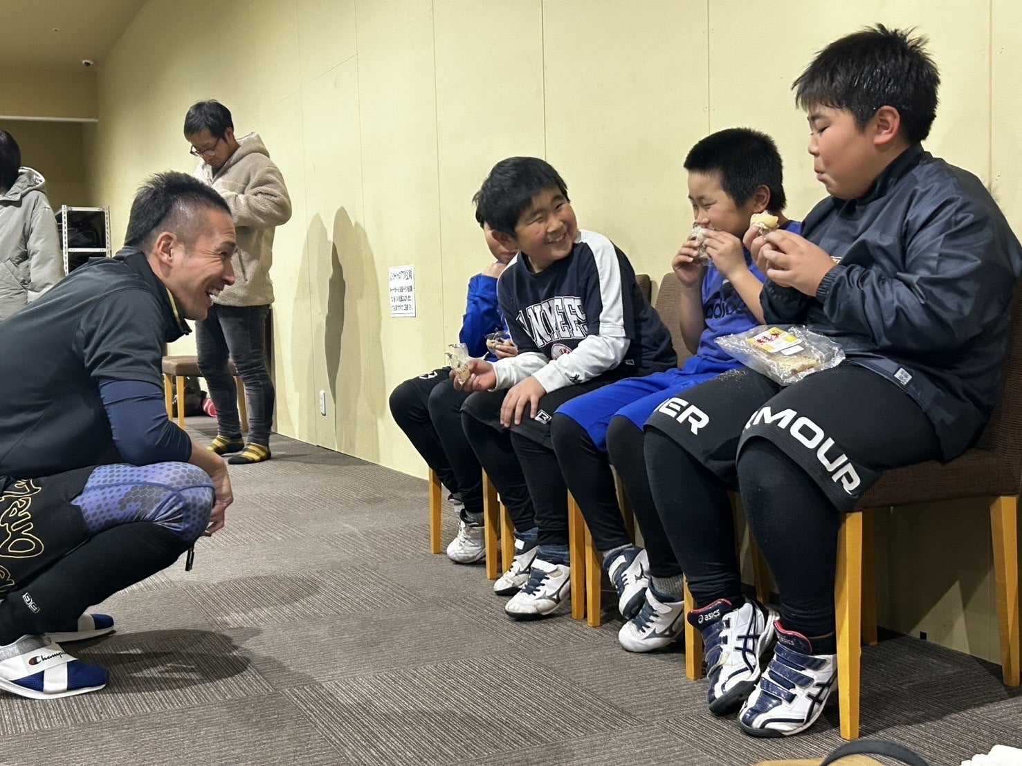 ▼ 木村昇吾も大好物の「きなこあんもち」。子どもたちと一緒に食べました。本当に美味しそうに食べてくれます♪
