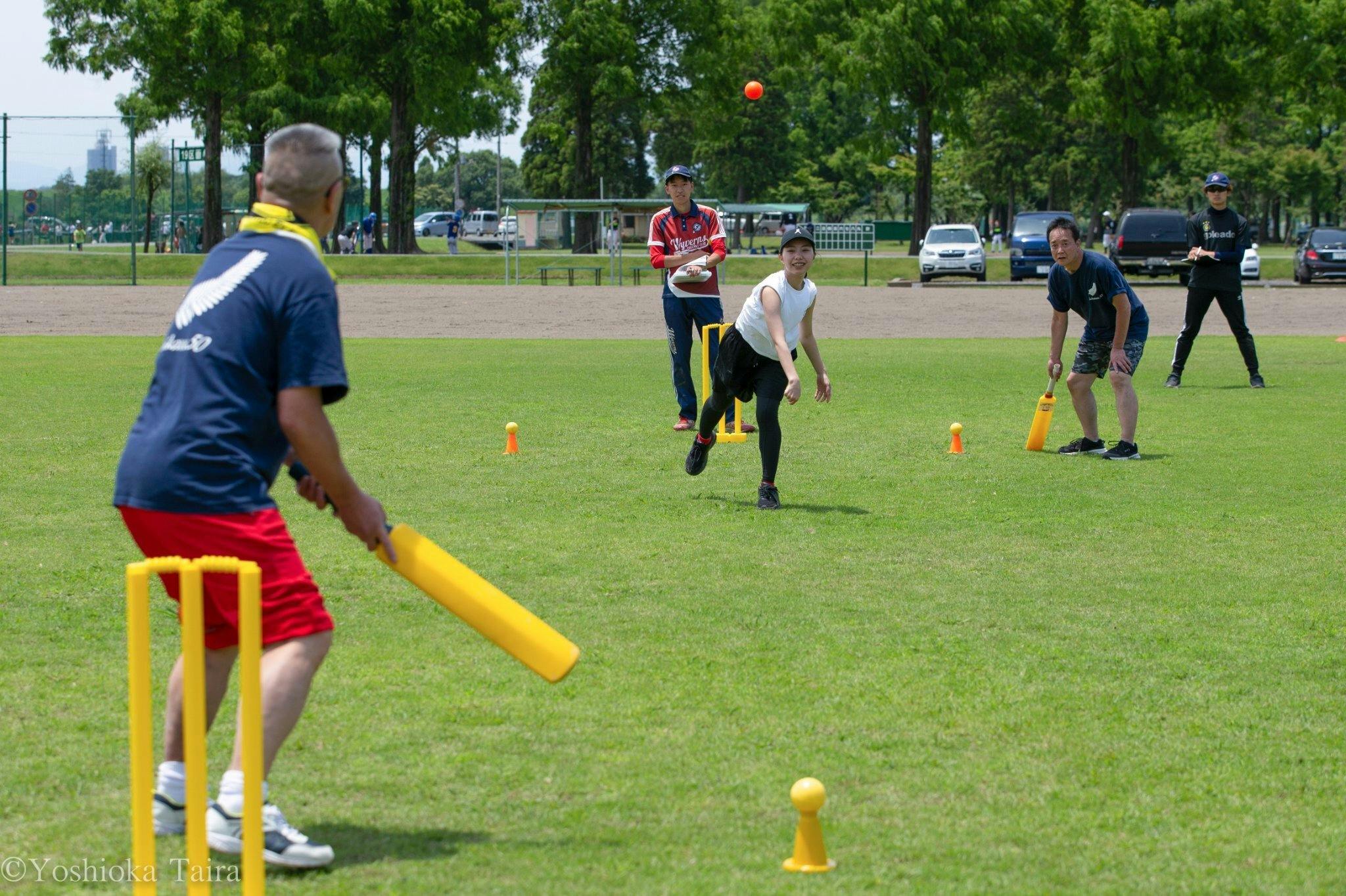 CrickeTRYは、プラスティック製のバットやゴムボールの簡易キットを使って、クリケットを楽しむイベントです。ルール説明をしっかり受けて、「打つ」・「投げる」・「走る」を体験。