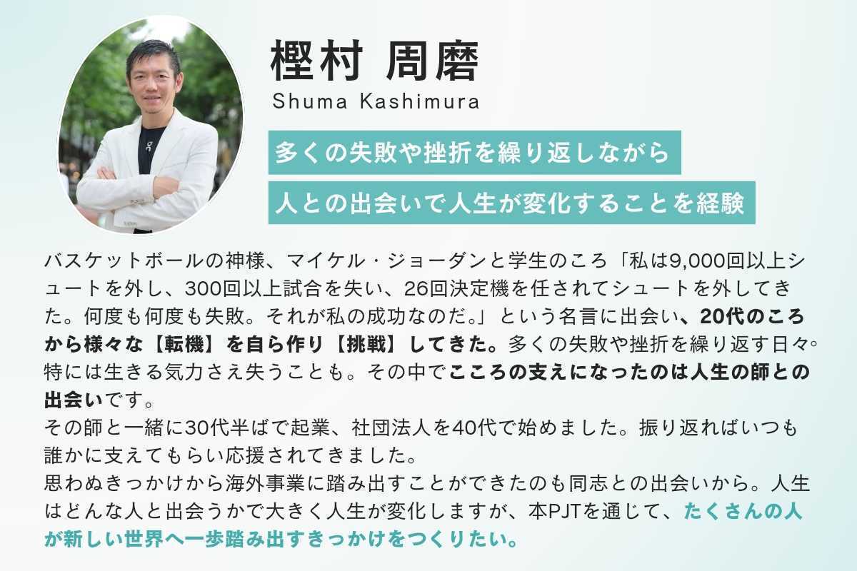 目的: 「失敗できる社会の醸成」を目指し、挑戦し一歩踏み出す人々を輩出するプラットフォームを作り上げること。