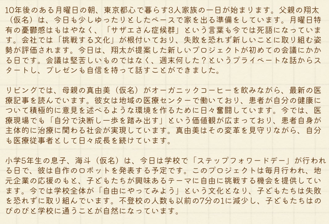 私たちが思い描く10年後の世界観はこんな感じです。