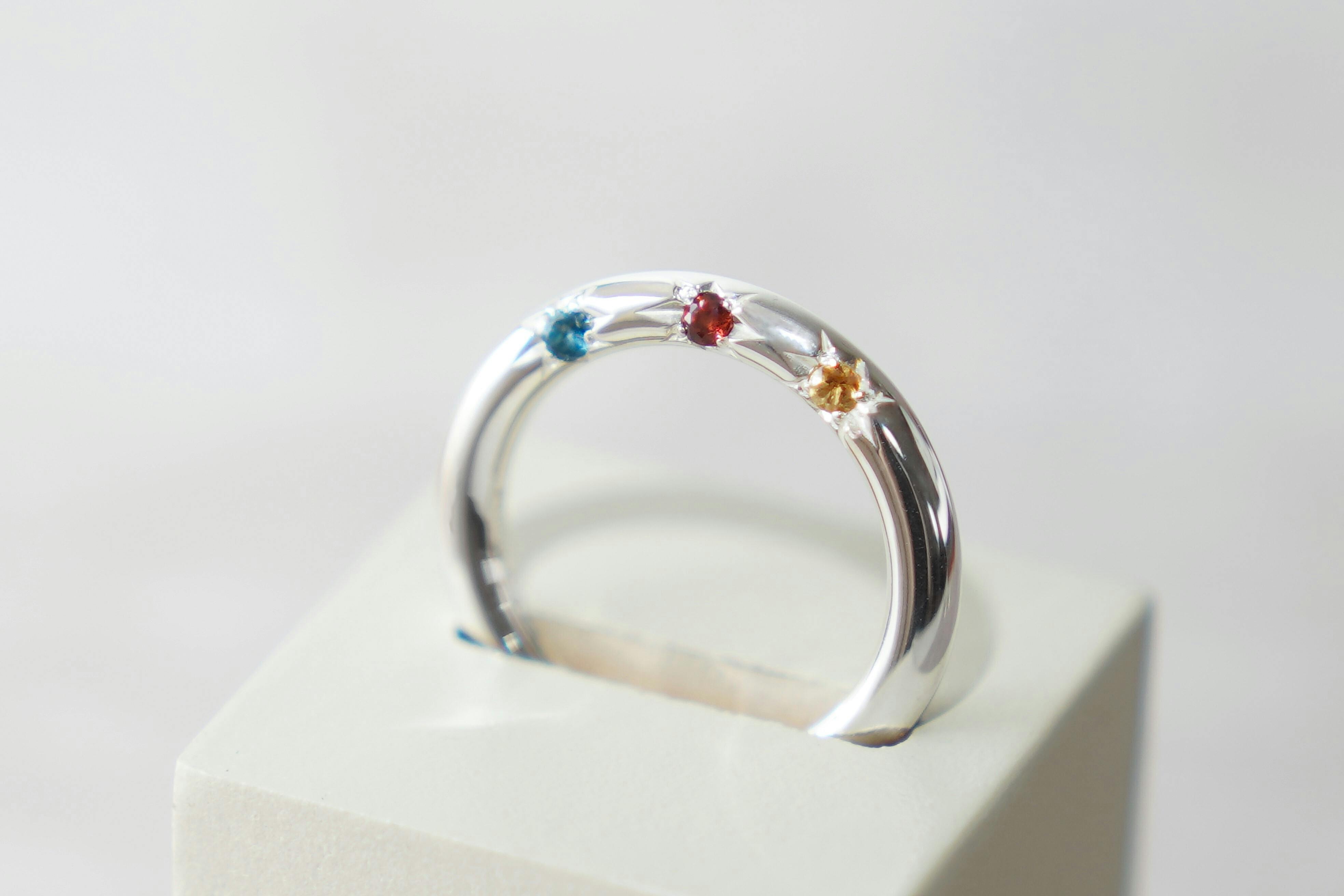 ファミリーリングとして家族やお子様の誕生石を選ぶ方、パートナーとのペアリングとしてそれぞれの誕生石を、推しのメンバーカラーで配置したいという方、好きな色で選んだ方など、たくさんの組み合わせが生まれています。