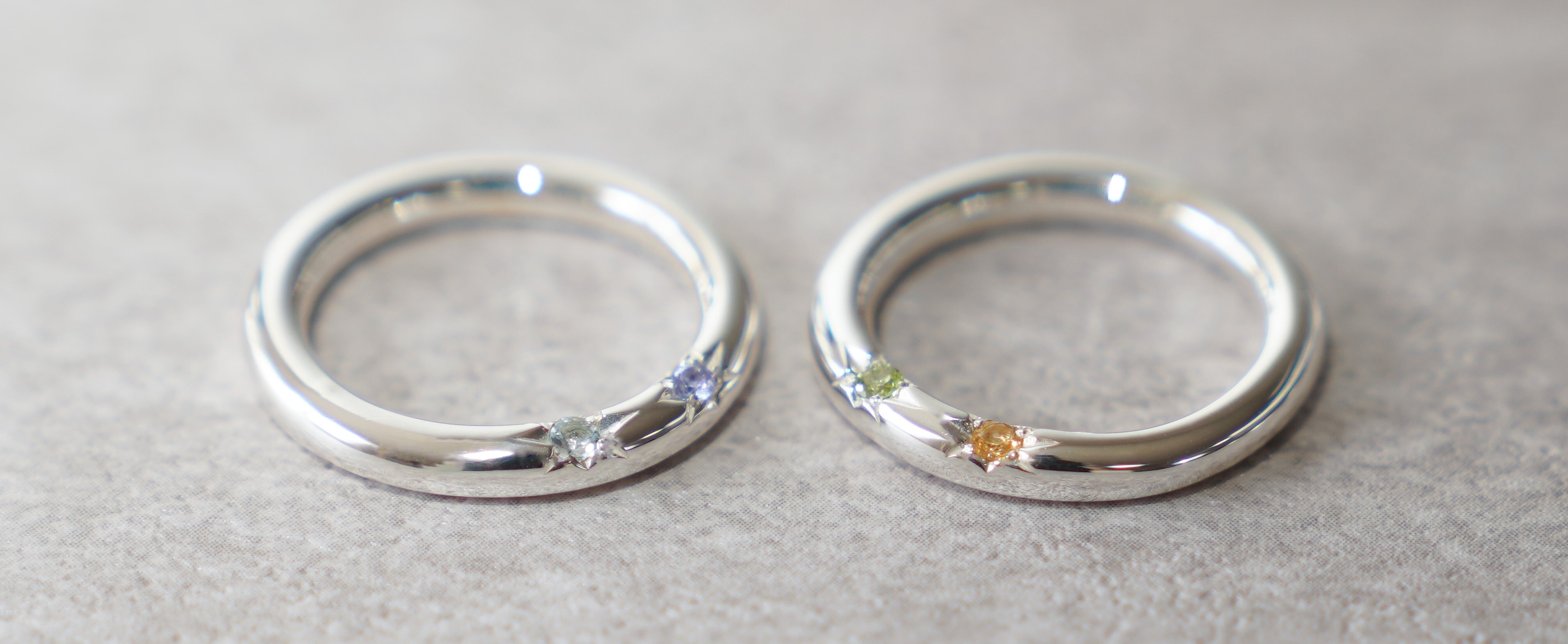WEBショップで通常販売しているバージョンでは選ぶことが出来ない、このプロジェクトでしか選べない【2石デザイン】。すっきりした佇まいだけど、この2石だけがとても特別に見えてくるそんなリングです。