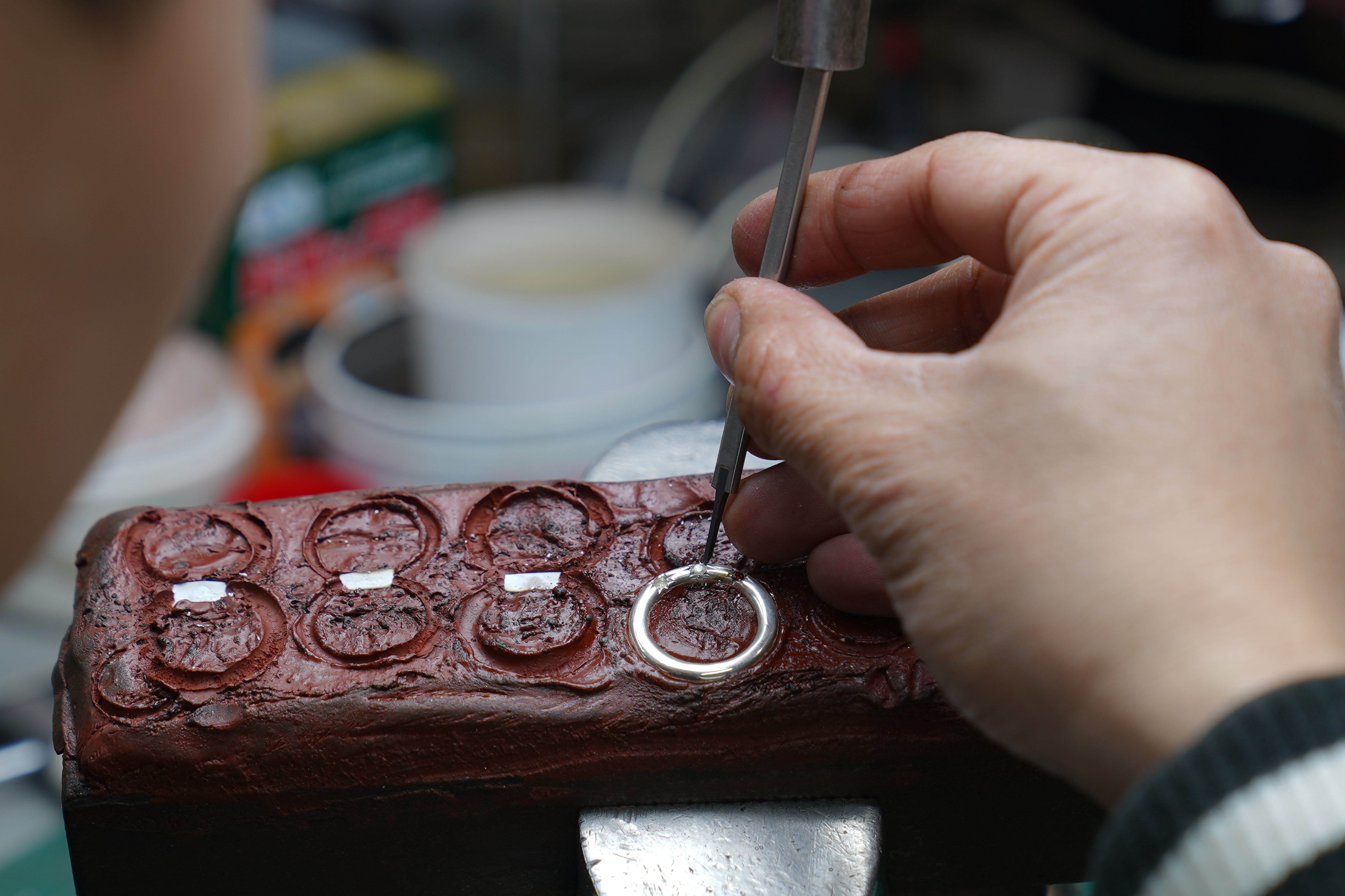 当店は埼玉県草加市ですべてを製作している国内のブランドです。すべての工程に職人の手が入り、ものづくりを体現しているリングでもあります。ところどころ手作りの温もりを感じて頂けると、とてもうれしく思います。