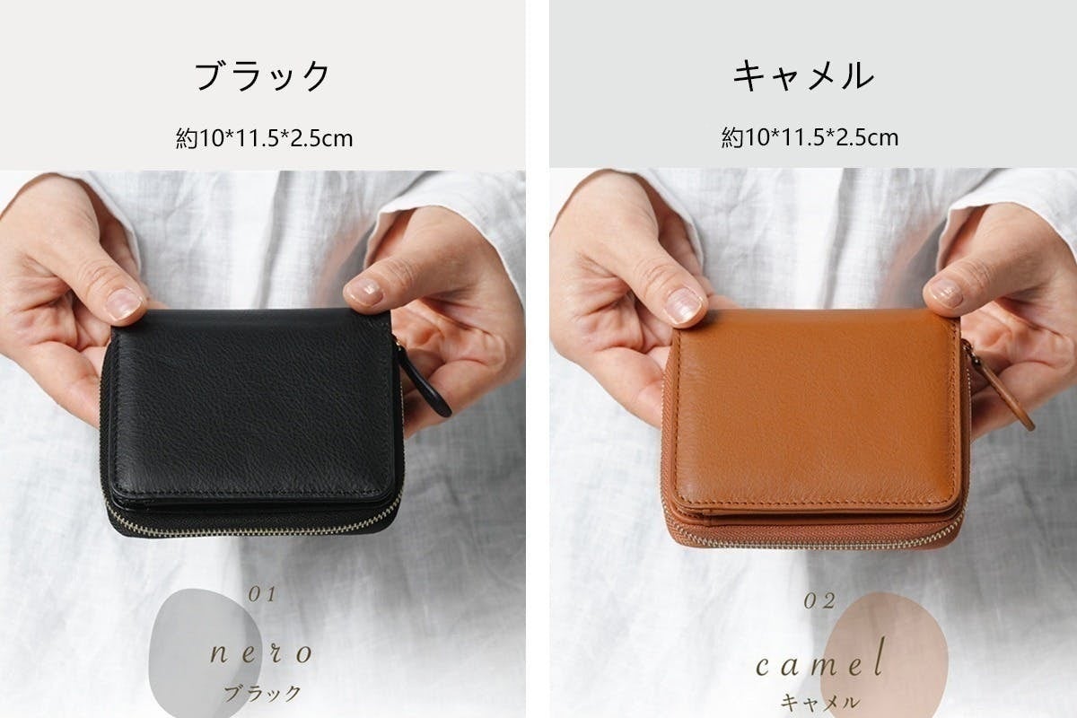 1.キャッシュレス時代に適した、極小・極薄の正方形の財布2.【中国で生産】職人が型紙作りから、裁断、縫製まで一貫して中国工房で手作りしています