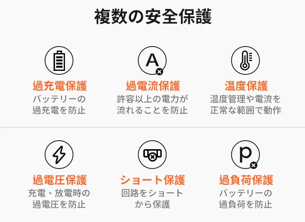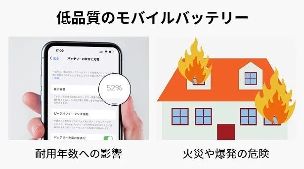 安定性が十分に確保されており、落下してもバッテリーセルが損傷するリスクやショートする可能性は低いです。電流保護、温度保護、その他の多重な対策により、充電中のスマートフォンの温度が過度に上昇することや、バッテリーの耐用年数が短縮可能性も低いです。