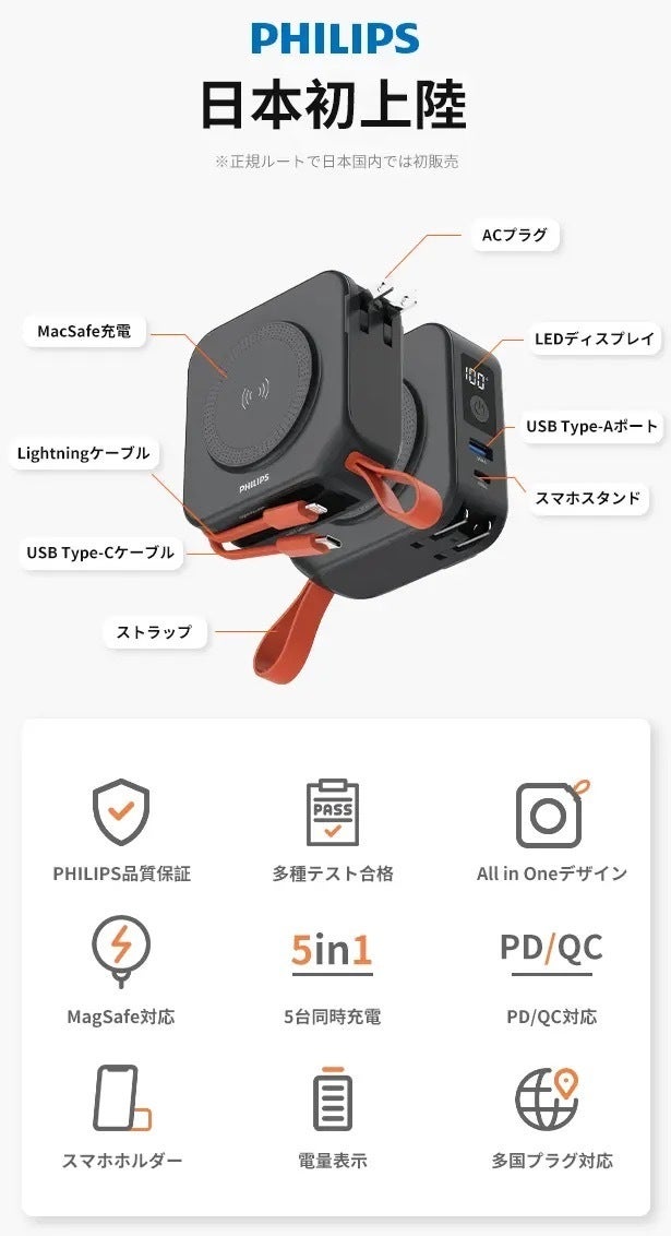 フィリップスは、医療、照明、家電などの分野で卓越した地位を築いており、そのモバイル充電器製品は一体化設計やMagsafeサポートなど、独自の特長を活かしています。