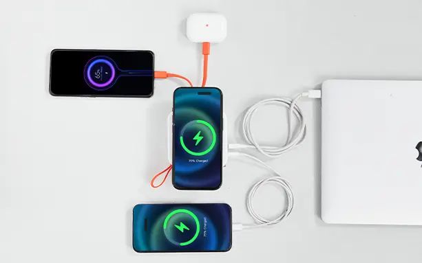 最大5台のデバイスを同時に充電でき、スマートフォン、タブレット、ワイヤレスヘッドフォン、スマートウォッチなどを常に電量満タンに保つことができます。