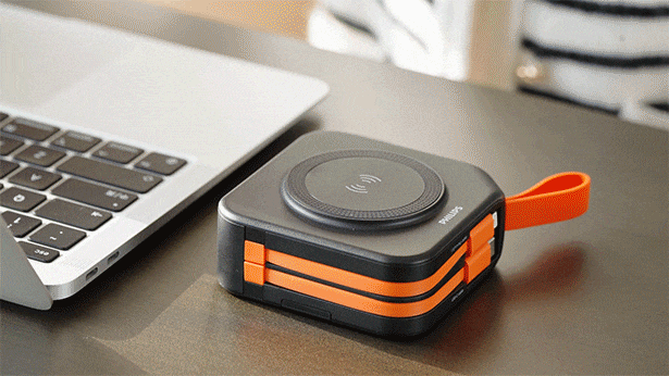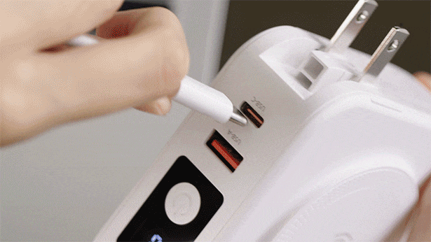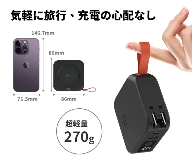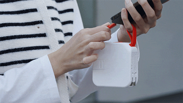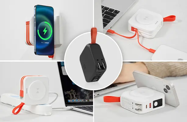 一体化したデザインを採用し、サイズはわずか86×86×35.5mmで、パソコンプラグとほぼ同じサイズです。充電プラグ、充電ケーブル、ワイヤレス充電機能がすべて内蔵されており、複数のデバイスを充電する手間が簡単に解決されました。