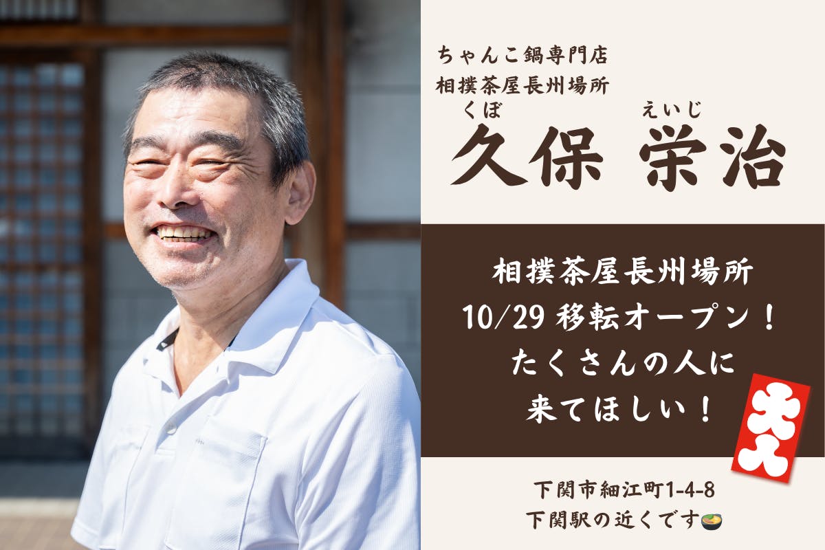 山口県下関市にてちゃんこ料理店「相撲茶屋長州場所」を経営しています、久保栄治と申します。