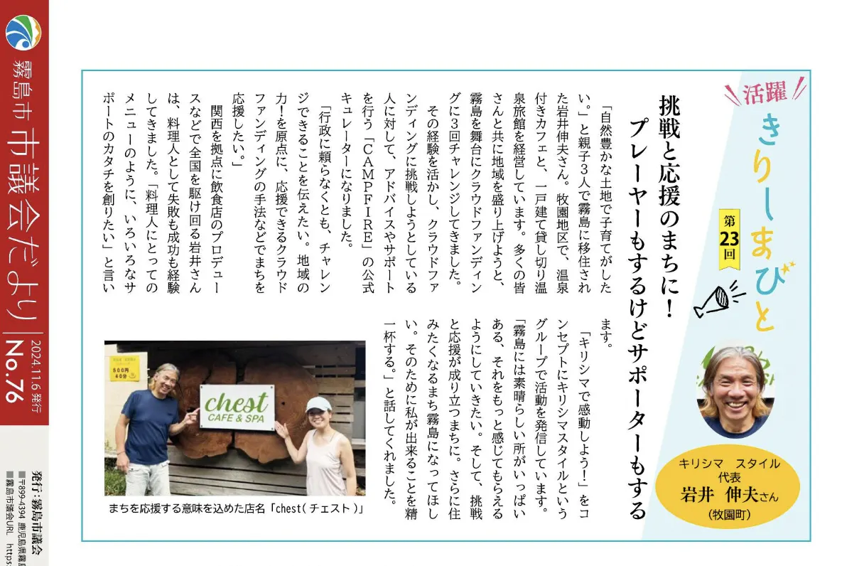 行政に頼らない挑戦 を目指している。と言っておきながらの取材には少し腰がひけた感があったのですが、いろんな方のアドバイスからお受けすることにしたんです。
