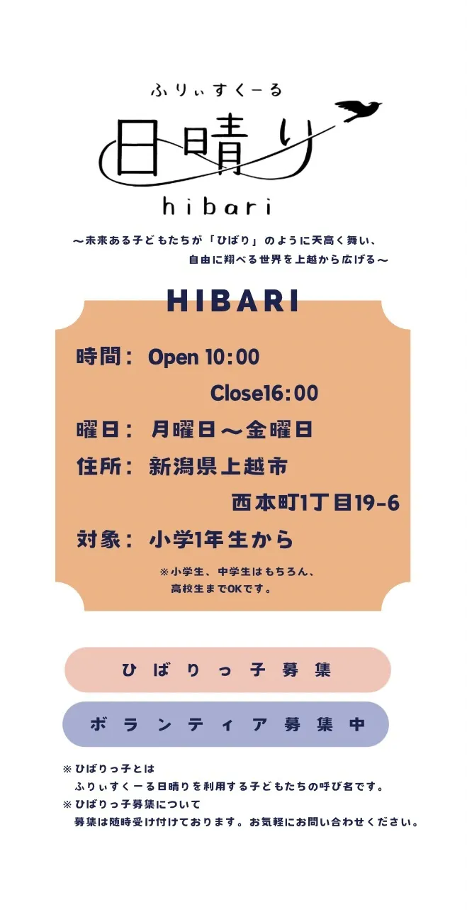 ~未来ある子どもたちが『ひばり」のように天高く舞い、自由に翔べる世界を上越から広げる~