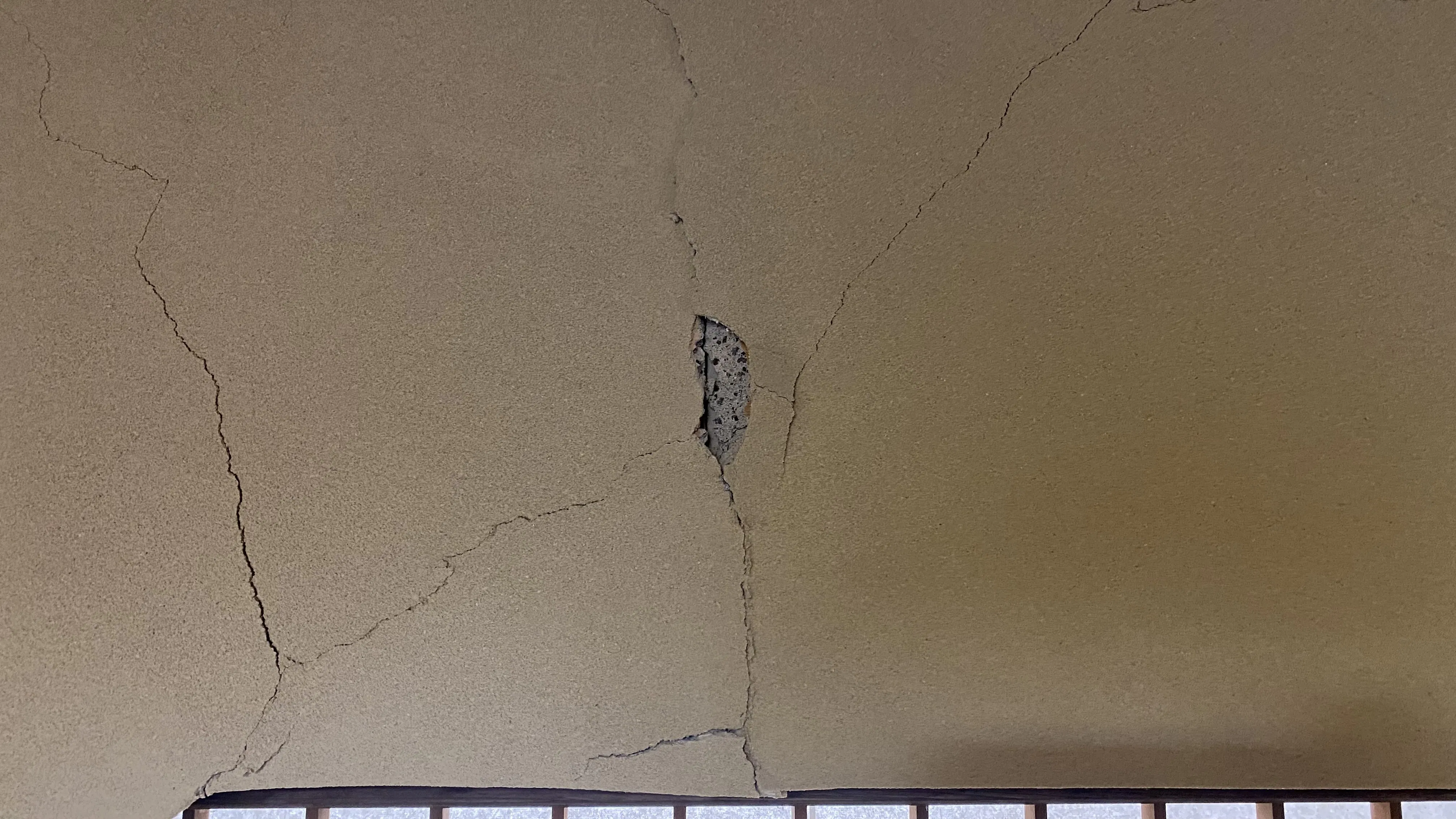 また、大きい地震等の自然災害があった際、悪化してしまう可能性が十分あります。ですので、早急にこの壁のひび割れを修復しなければなりません。壁紙を張るのではなく、この壁の素材の良さを残したいと考えております。