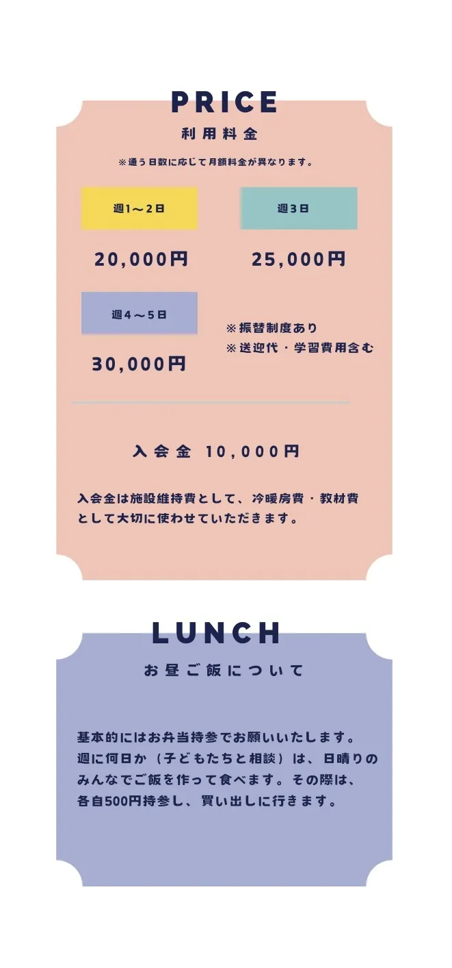 毎週月曜日、スタッフと子どもたちでミーティングをします。そこで、やりたいことを出し合ったり、挑戦することを話し合ったりして週の計画&タイムテーブルを決めます。自由に、楽しく、自分らしく過ごせる場所になるように勉強や工作、生き物の飼育、陶芸、職場体験等のたくさん体験ができる場所となるように準備を進めていきます。