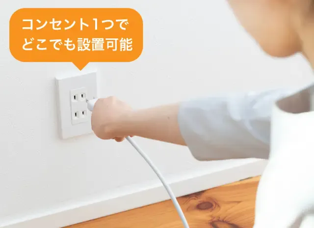 ③コンセント一つで設置完了。持ち運び可能でどこでもすぐに乾燥可能